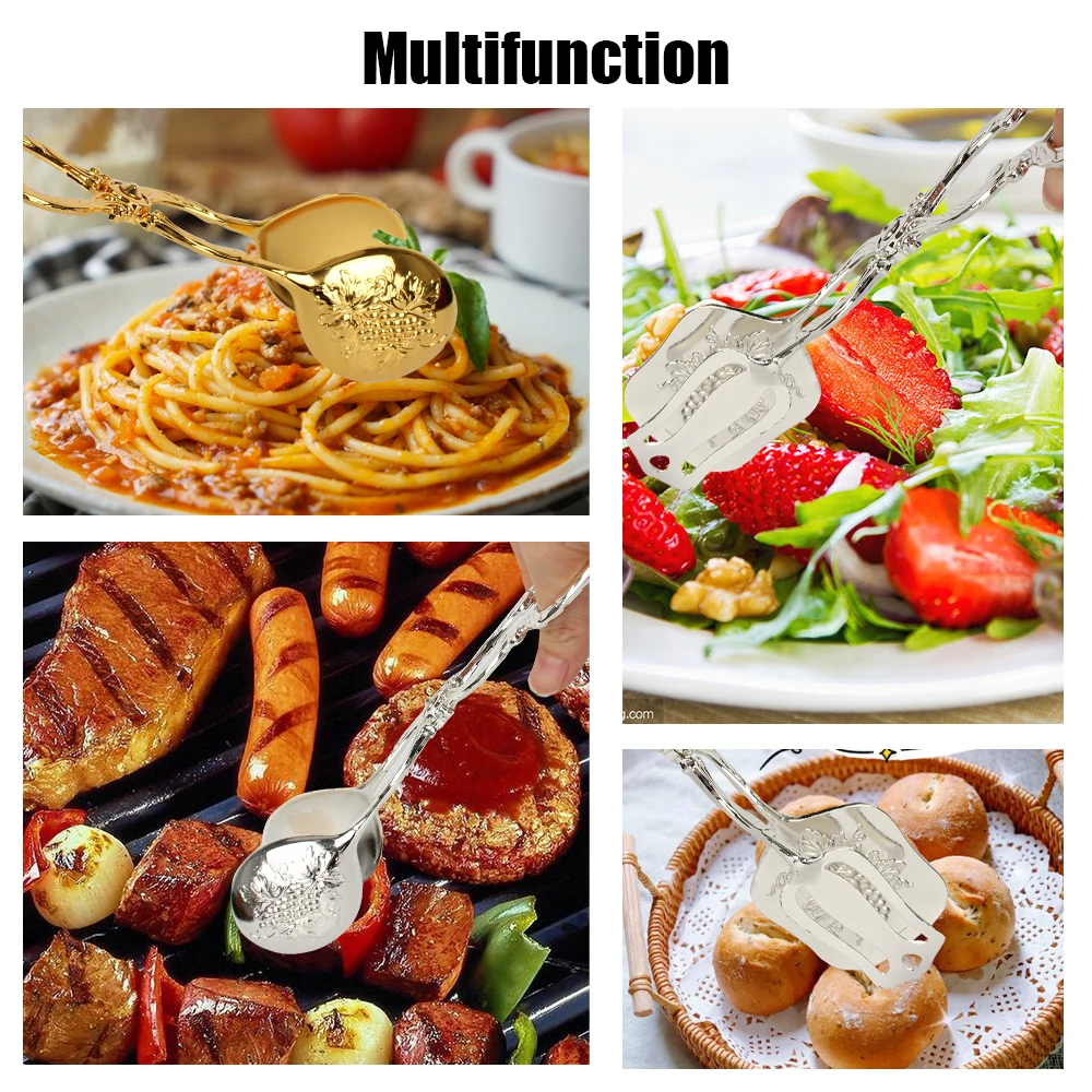 Introducing the Vintage Style Gold-plated Salad Pastry Clamp, a perfect addition to your buffet tools. This elegant food tong is designed for serving salads, pastries, and snacks with style.
