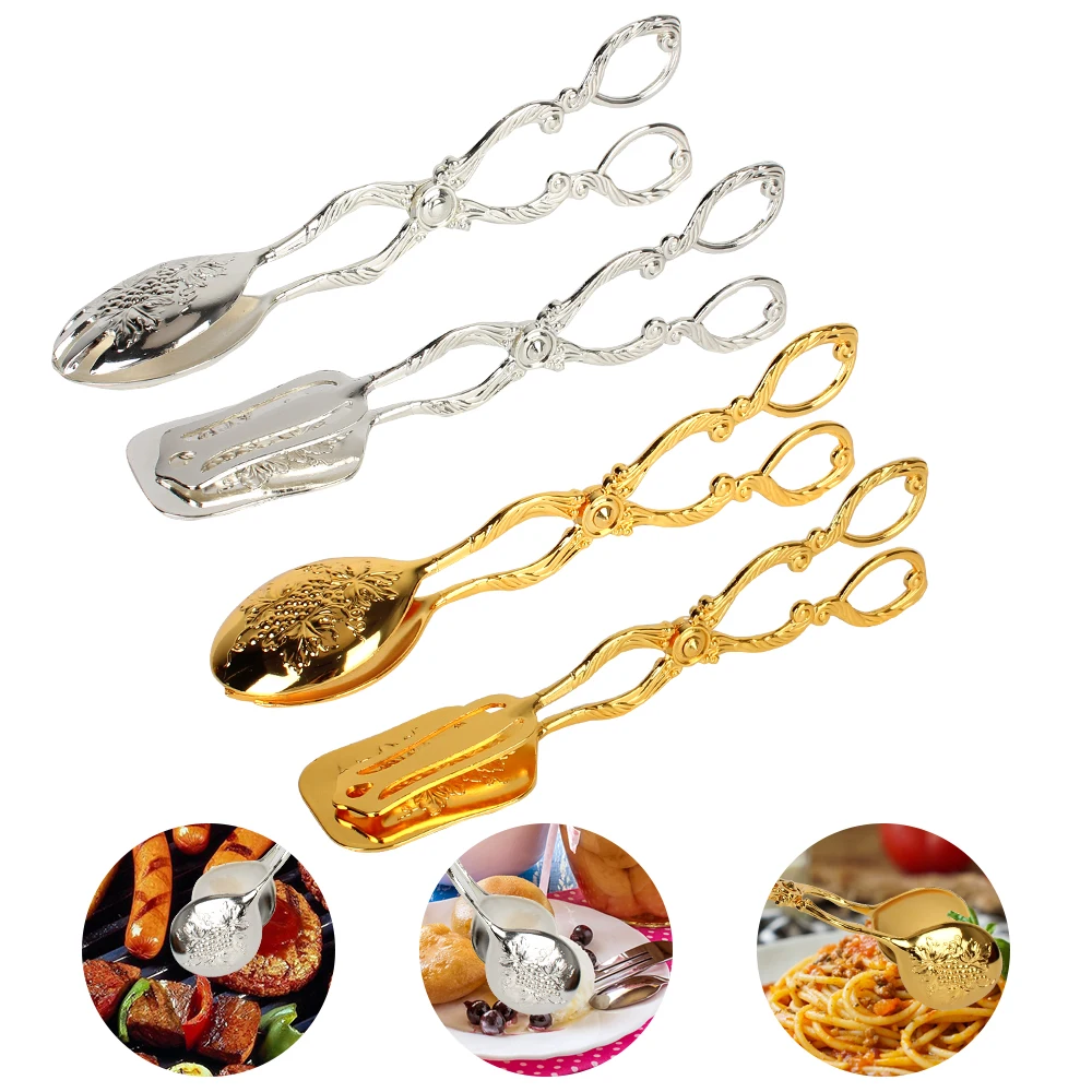 Food Tong Buffet Tool Vintage Style Gold Plated Salad Pastry Clamp Tongs