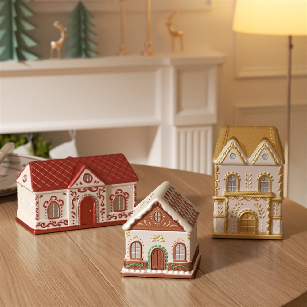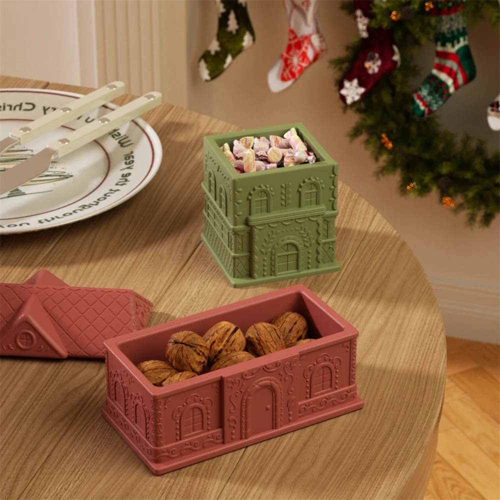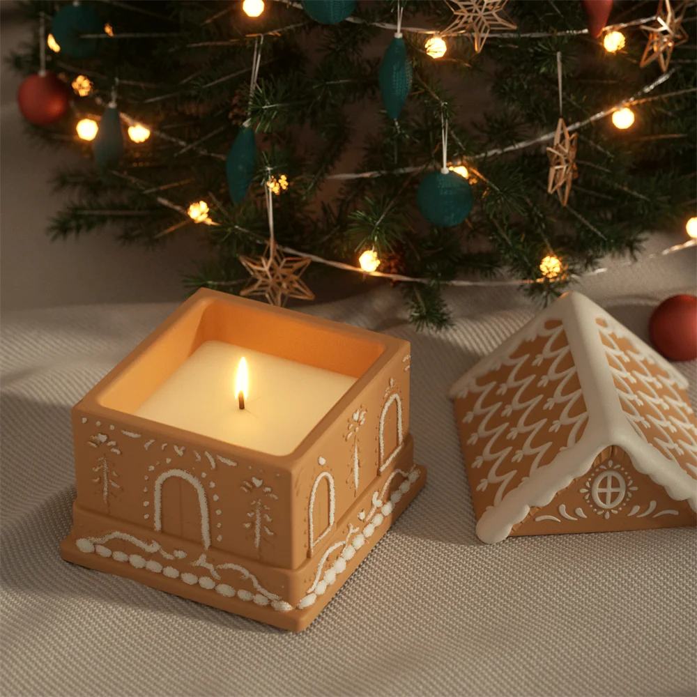 Gingerbread Cottage Candle Jar Concrete Silicone Mold DIY Christmas Decor