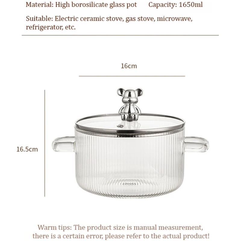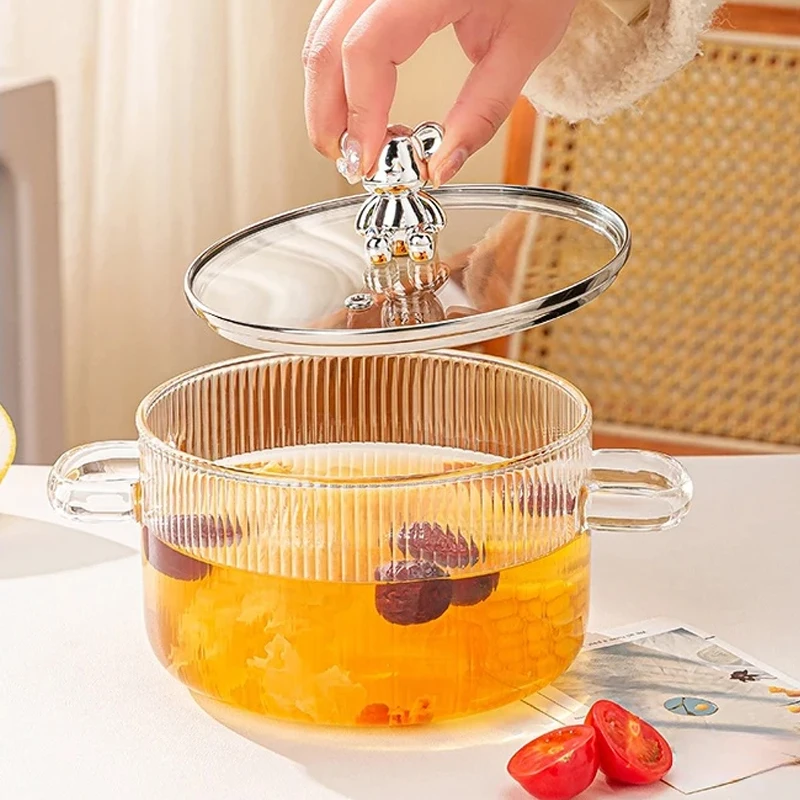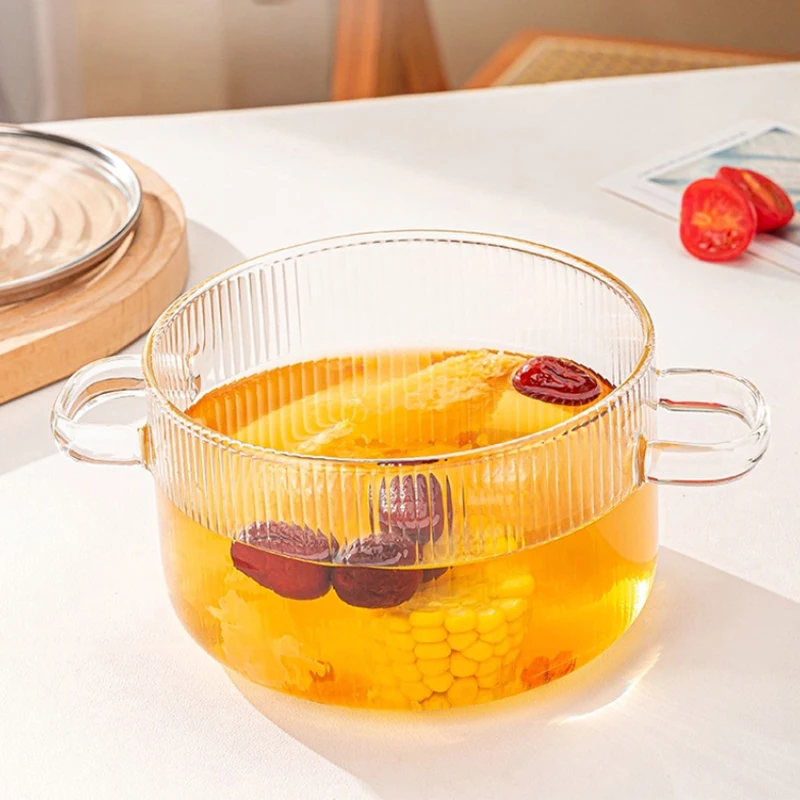 This Glass Saucepan Soup Pot is designed for high-temperature cooking and features a lid and dual handles for convenience. Made from transparent borosilicate glass, it allows for easy monitoring of your cooking process. This versatile pot is suitable for various cooking methods including induction, gas stoves, and can withstand microwave heating.