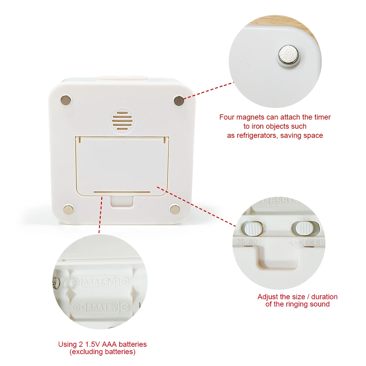 Mechanical Alarm Clock Magnetic Kitchen Timer Stainless Steel Reminder