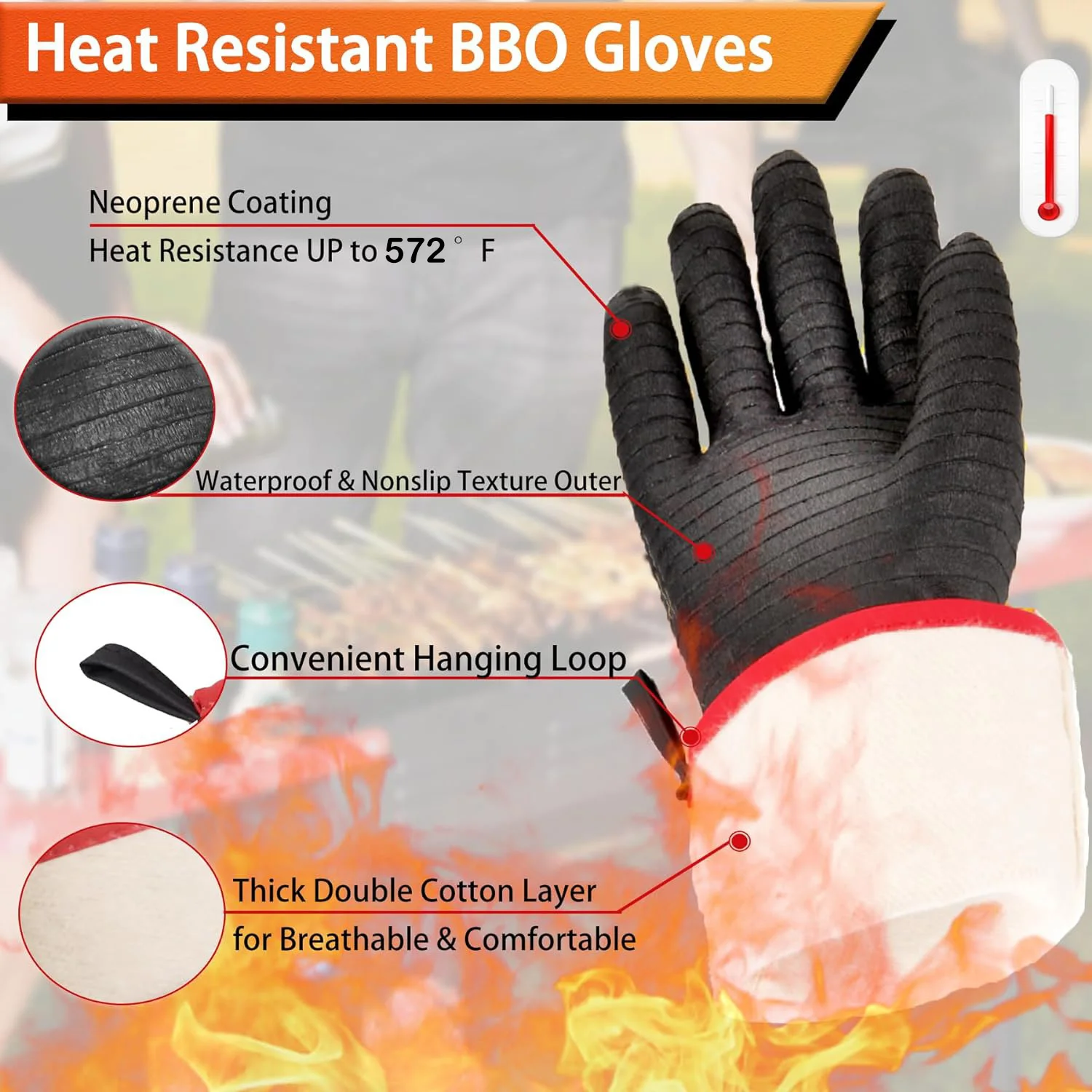 Heat Resistant Gloves for Grill BBQ Waterproof Long Sleeve Pit Grill Gloves 14 Inch