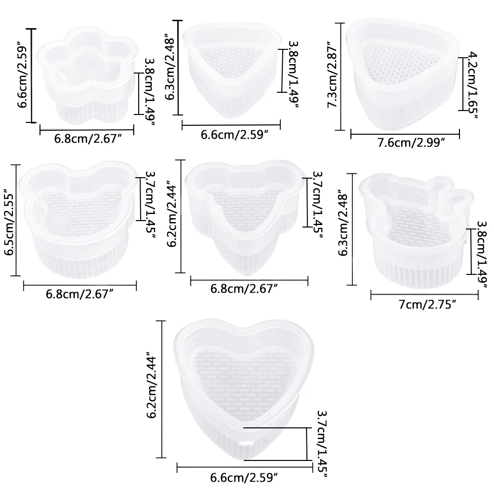 Introducing the Onigiri Set, a versatile kit designed for making sushi rolls and rice balls. This DIY tool kit allows you to create beautifully shaped rice balls in various fun designs, perfect for bento boxes and family meals.