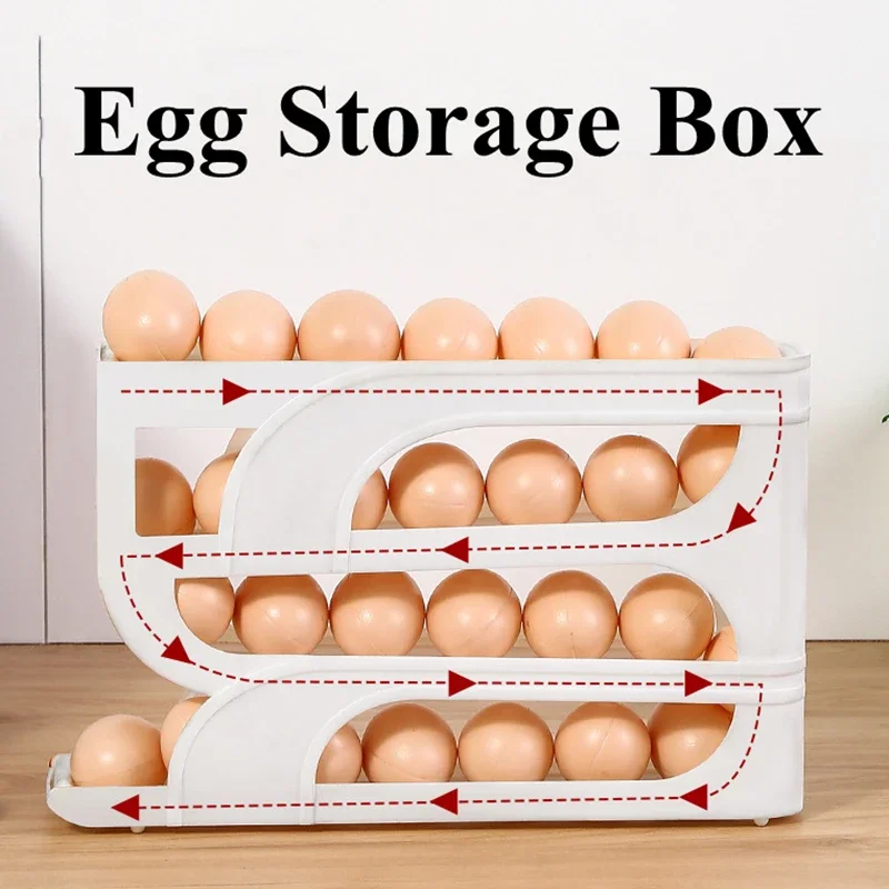 Introducing the Household Automatic Rolling Egg Storage Box, a practical solution for keeping your eggs organized and fresh in your kitchen refrigerator. This egg storage rack is designed to fit conveniently in the side door of your fridge, making it easy to access your eggs while maximizing space.