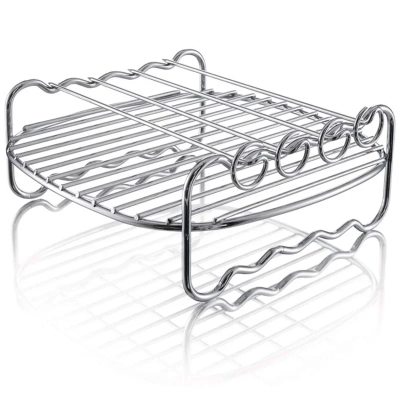 Air Fryer Rack Set 7 Inch Double Layer Grilling Rack with Skewers and Steaming Holder