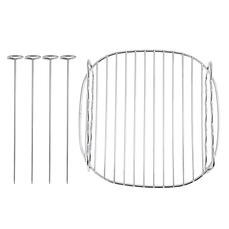 Justdolife 7-Inch Air Fryer Rack Set is a versatile kitchen accessory designed for grilling and steaming. This double-layer rack comes with skewers and an oil holder, making it perfect for various cooking needs in your air fryer.