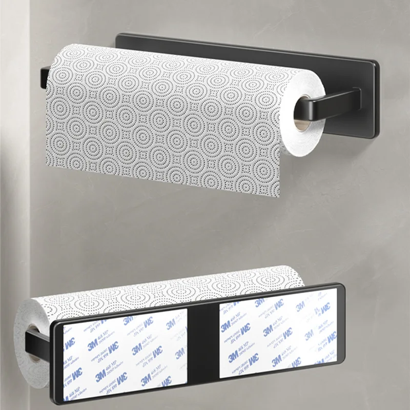 Kitchen Paper Towel Holder Wall Mount Self-Adhesive Metal Storage Rack