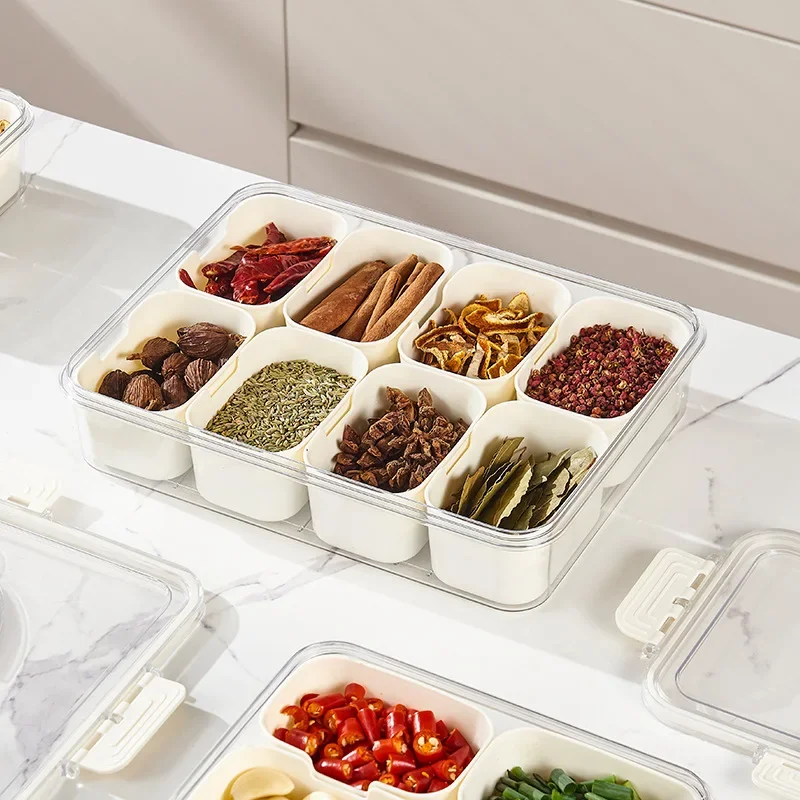 Kitchen Spice Storage Box Multi Grid Sealed Moisture Proof Container ABS Material