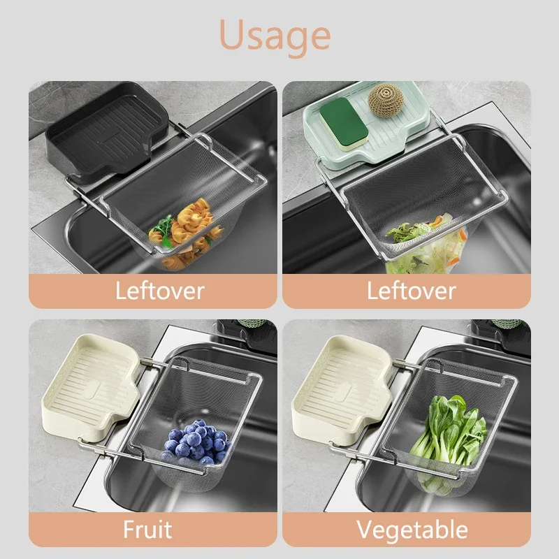 Kitchen Sink Filter Drain Basket Strainer Multifunctional Drainage Rack Green Black Beige Yellow