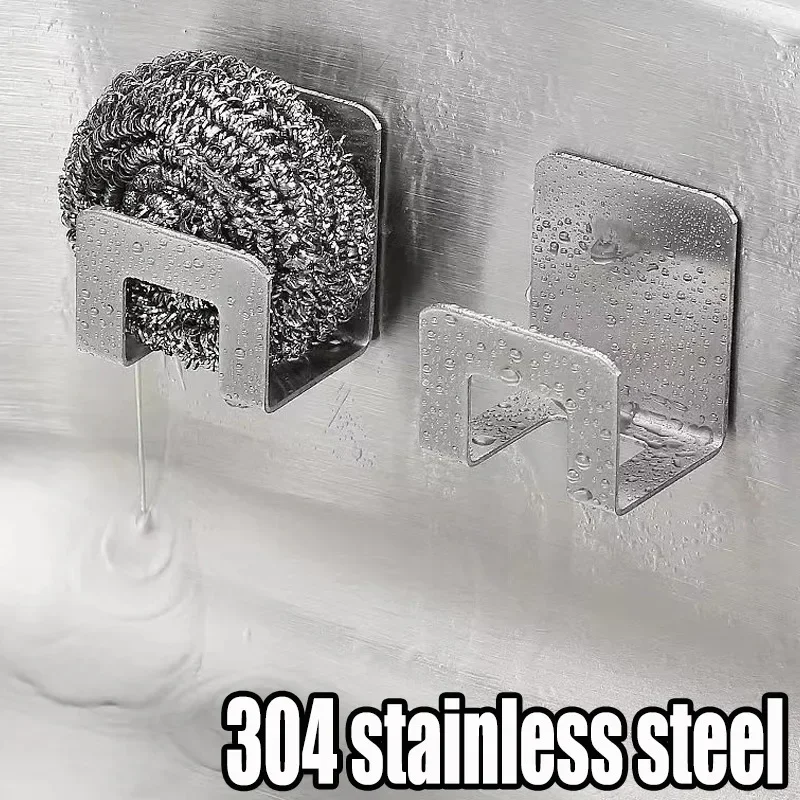 Stainless Steel Kitchen Sponge Holder Drain Drying Rack Self Adhesive Hooks