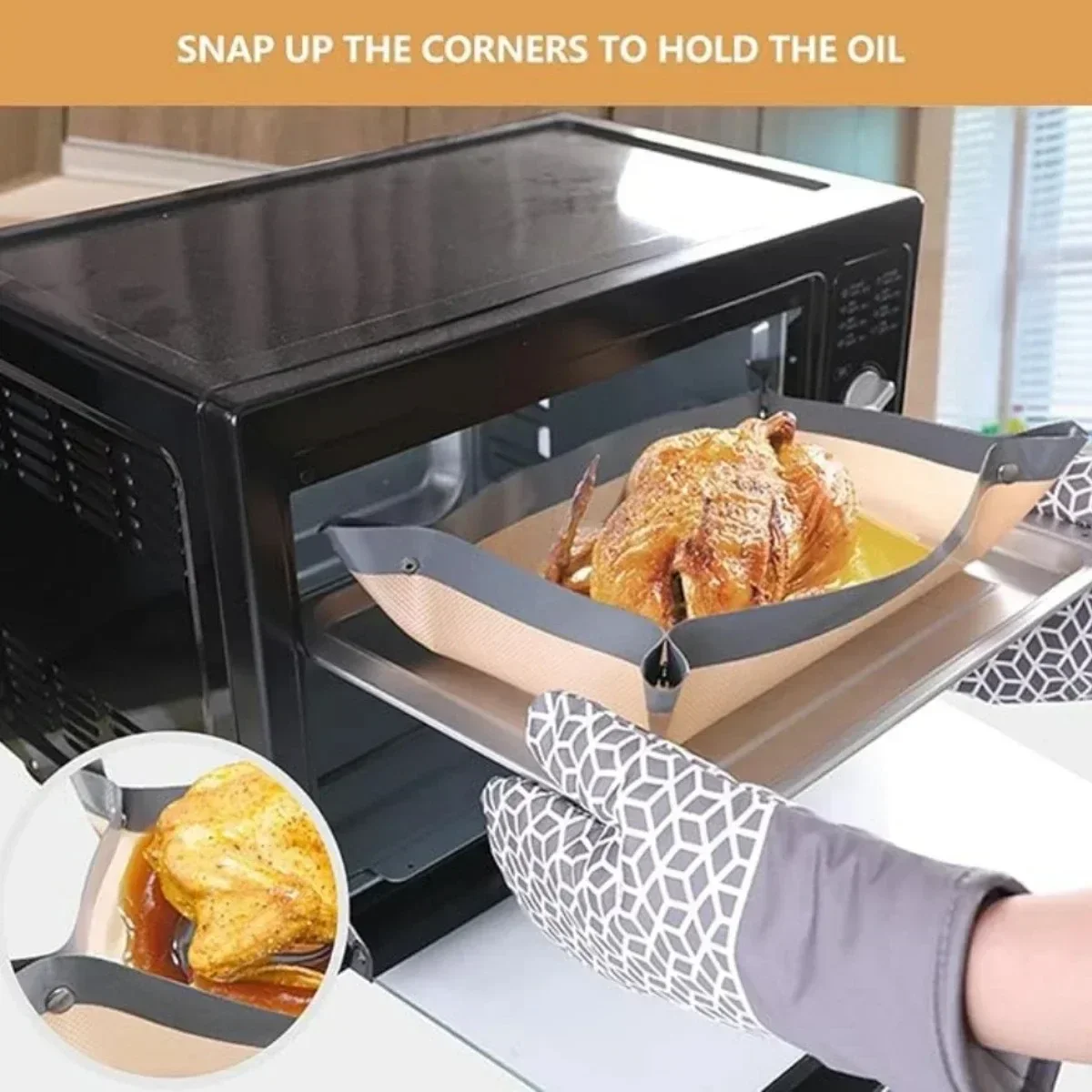 This silicone baking mat is designed for high-temperature baking, providing a leak-proof and non-stick surface ideal for cookies, chicken, and fish. It is eco-friendly and available in various colors and sizes.