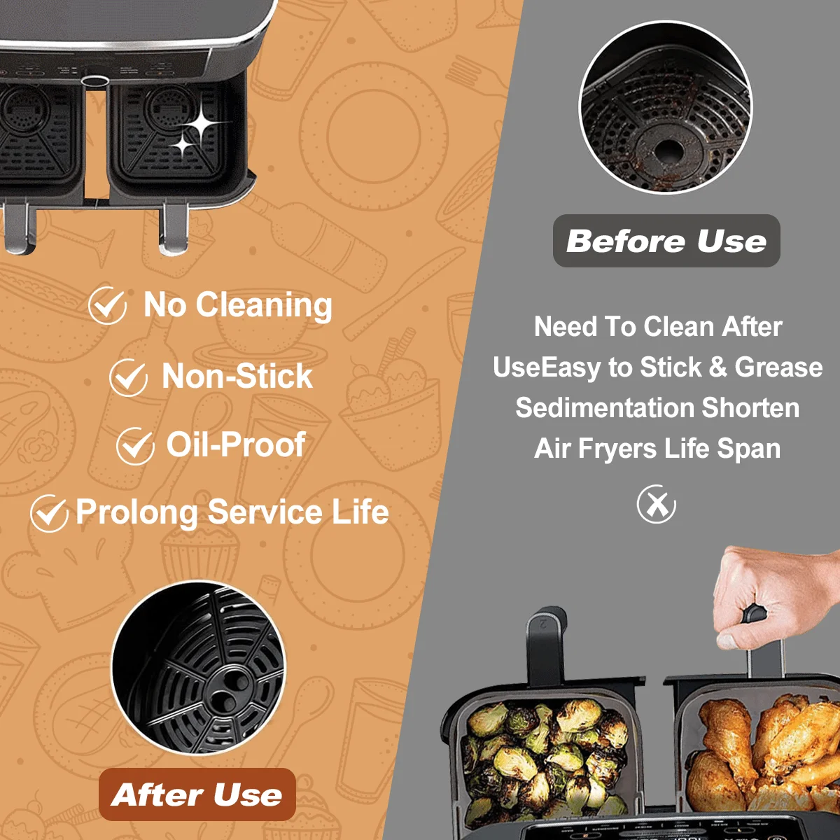 - Easy to Clean: The soft and flexible silicone material allows for easy cleaning with warm water. You can flip the liner inside out for thorough washing, ensuring your air fryer remains clean.