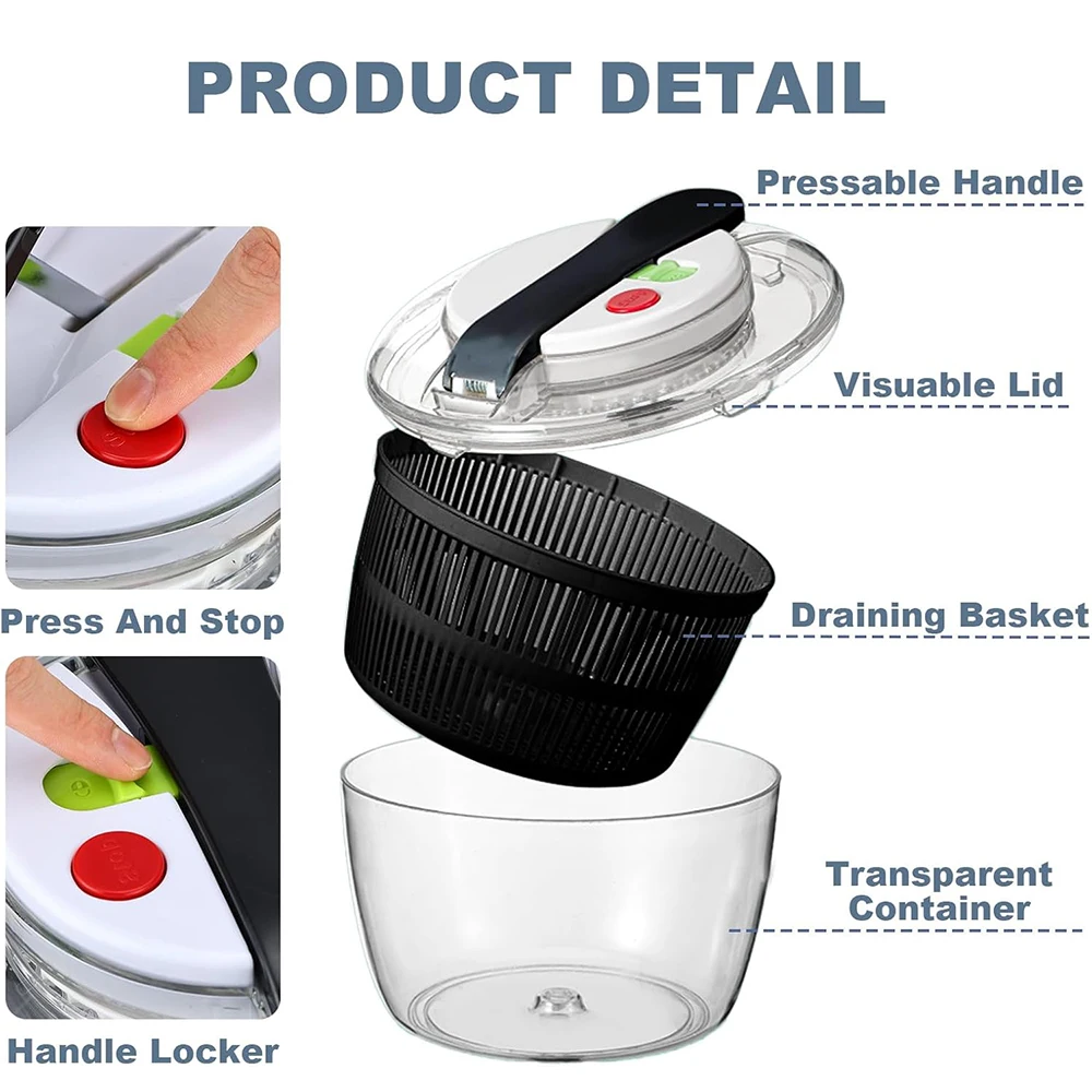 - Perfect for washing and drying salad, lettuce, vegetables, and fruits.