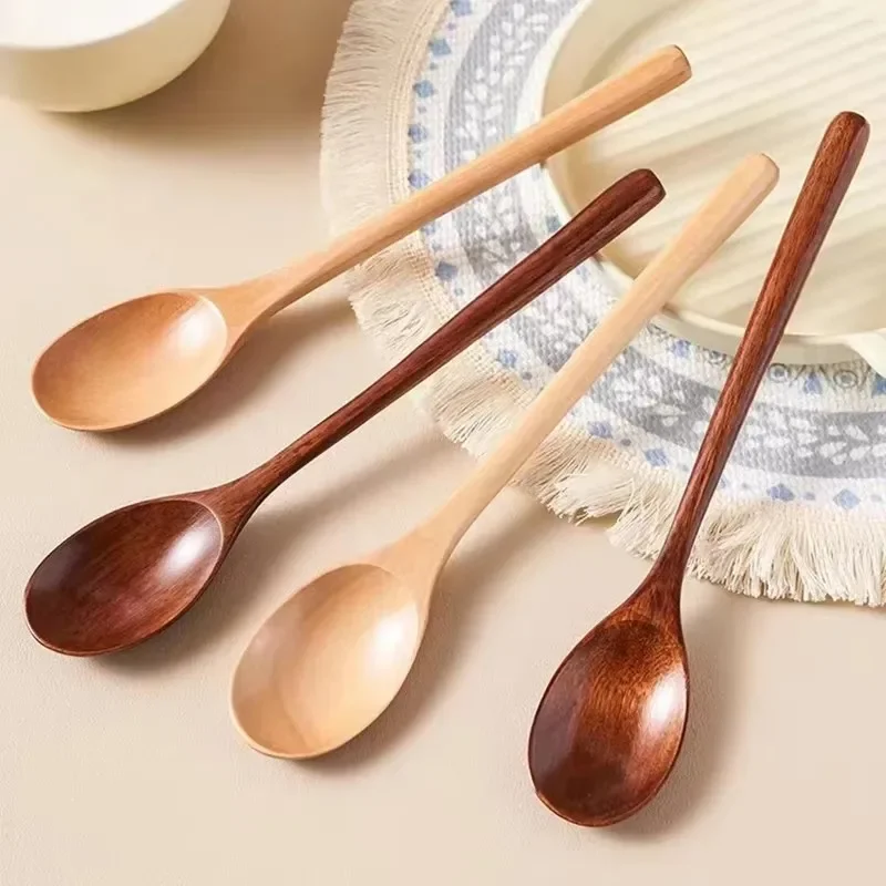 Long Wooden Teaspoons Kitchen Cooking Utensils for Soup Tea Honey Stirring 13 Inch