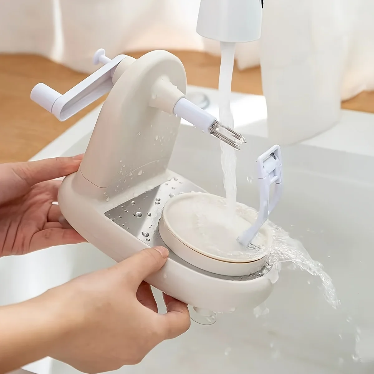The Manual Food Crusher is a multifunctional kitchen tool designed to make peeling fruits and vegetables easy and efficient. With its stainless steel blades and comfortable hand crank, this peeler is perfect for preparing apples and other fruits quickly.