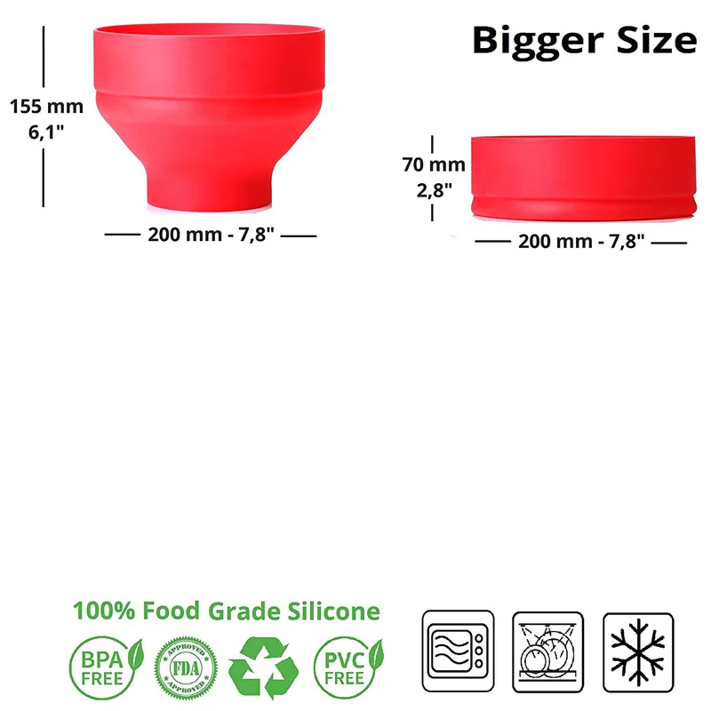 Introducing the Microwave Popcorn Bowl Bucket, a versatile and convenient silicone popcorn maker designed for easy use in your kitchen. This food-grade, foldable bowl allows you to make delicious popcorn quickly and effortlessly, making it a perfect addition to your snack time essentials.