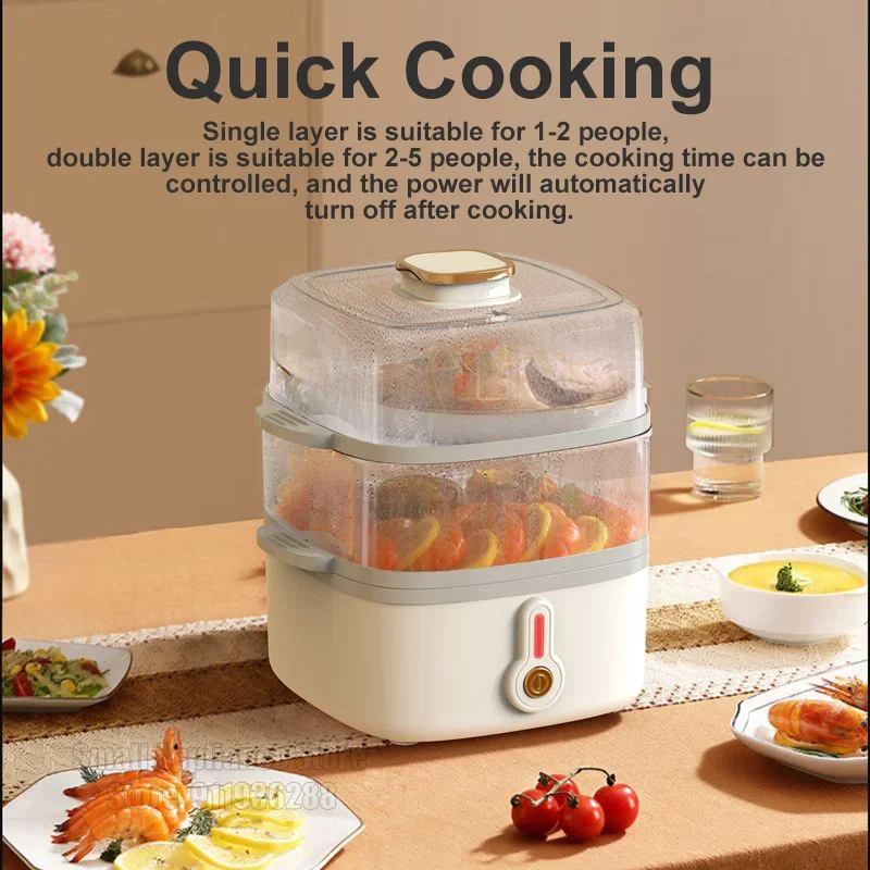 The Electric Mini Steamer is a versatile kitchen appliance designed for efficient cooking and steaming. With its double-layer design, it is perfect for preparing meals for 1 to 5 people, making it an ideal choice for families or small gatherings.