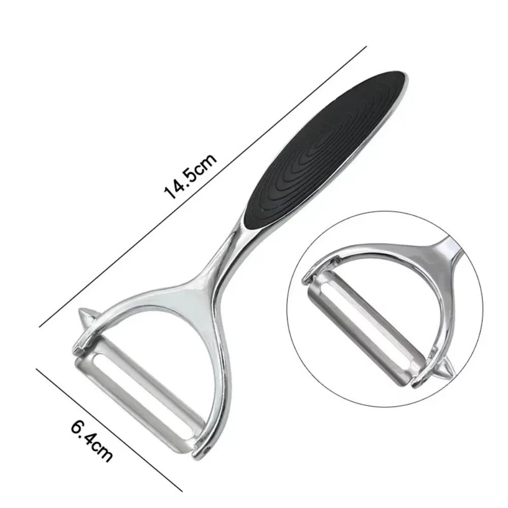 This multi-function peeler is designed for effortless peeling of fruits and vegetables. With its sleek black color and stainless steel blade, it combines functionality with style, making it a perfect addition to your kitchen tools.
