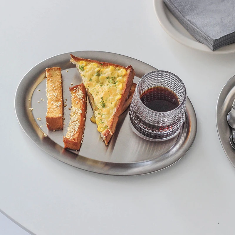 304 Stainless Steel Plates Vintage Coffee Trays Retro Tableware Dinner Plates