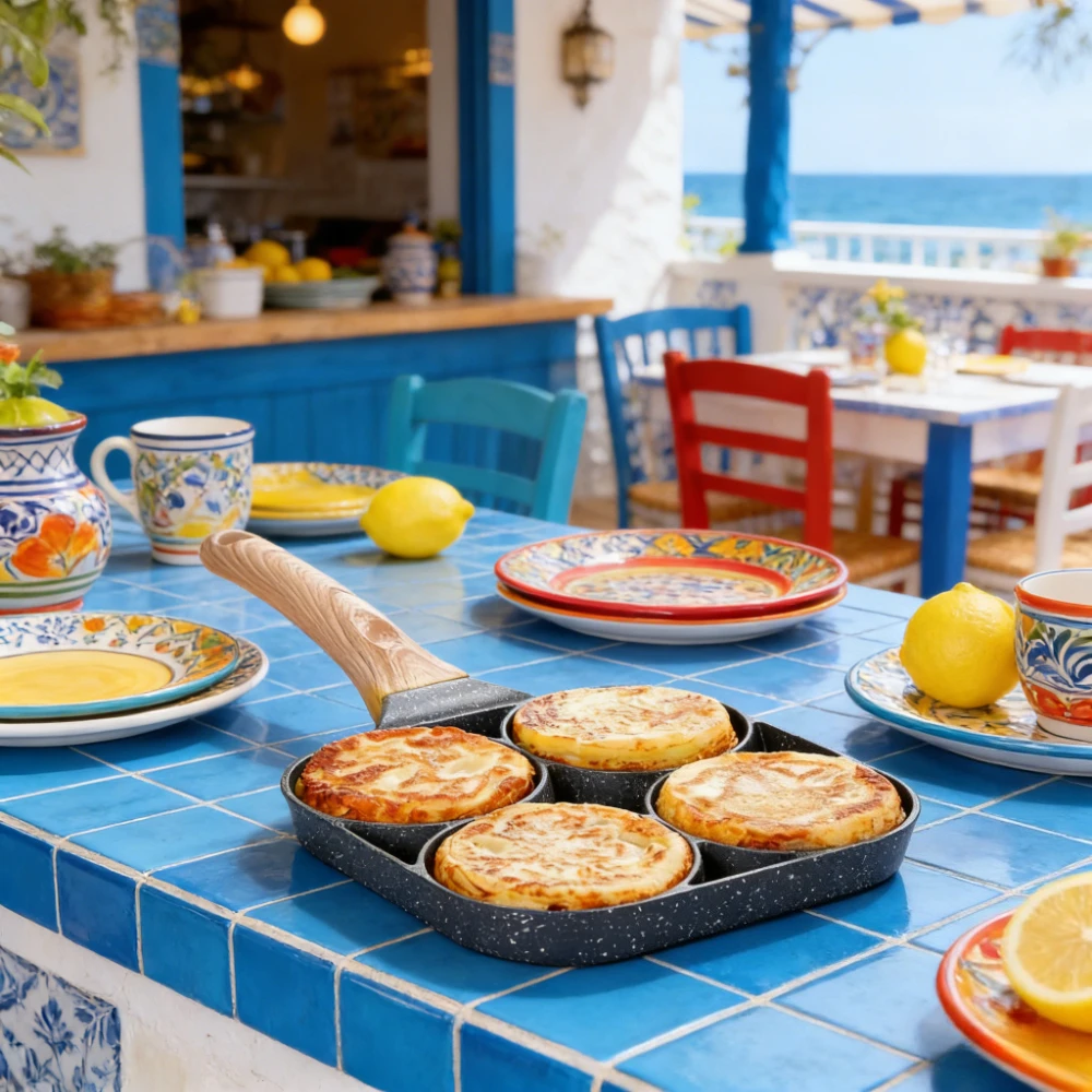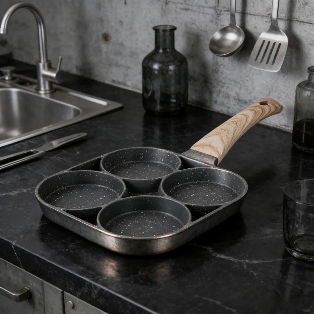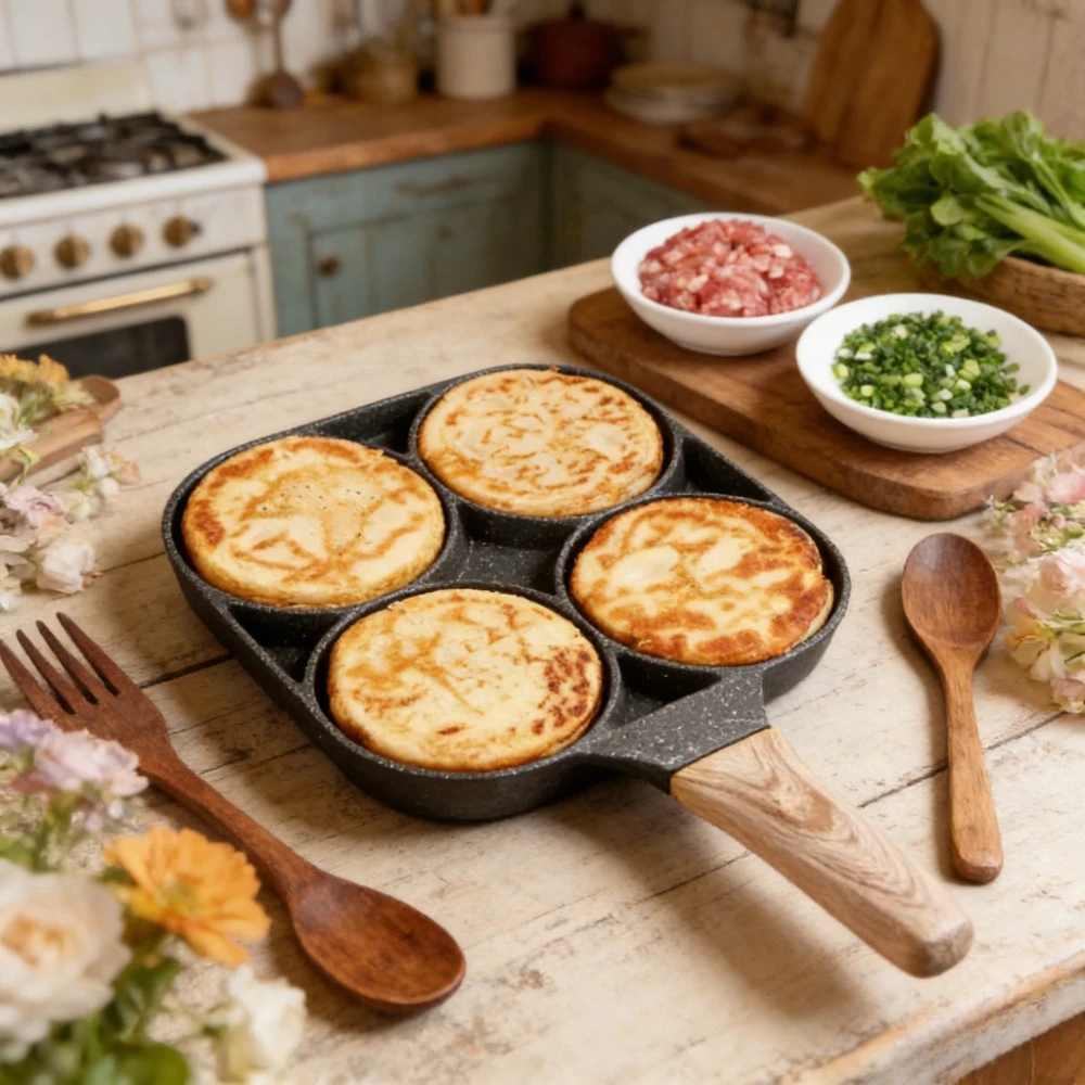 New 4 Hole Omelet Pan is designed for making delicious breakfasts with ease. This versatile pan is perfect for frying eggs, grilling steaks, and preparing various breakfast items. Its non-stick surface ensures easy food release and quick cleaning, making it an essential tool for any kitchen.