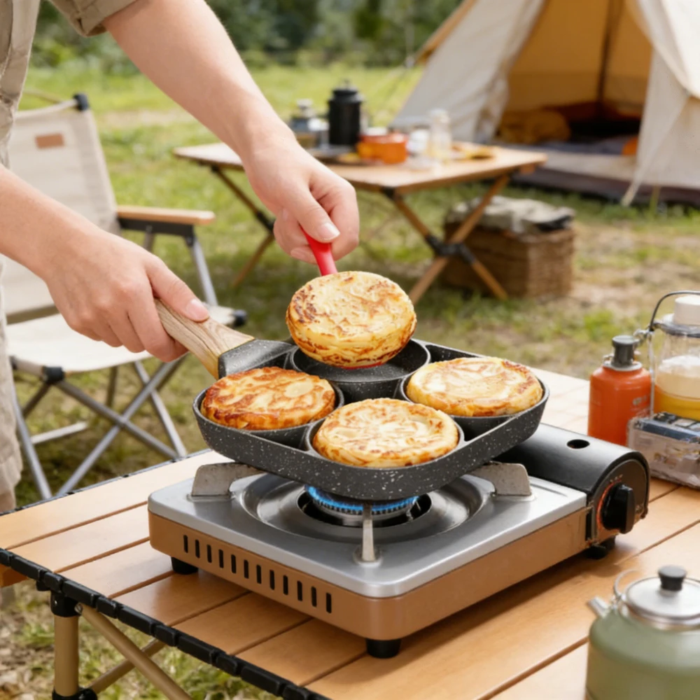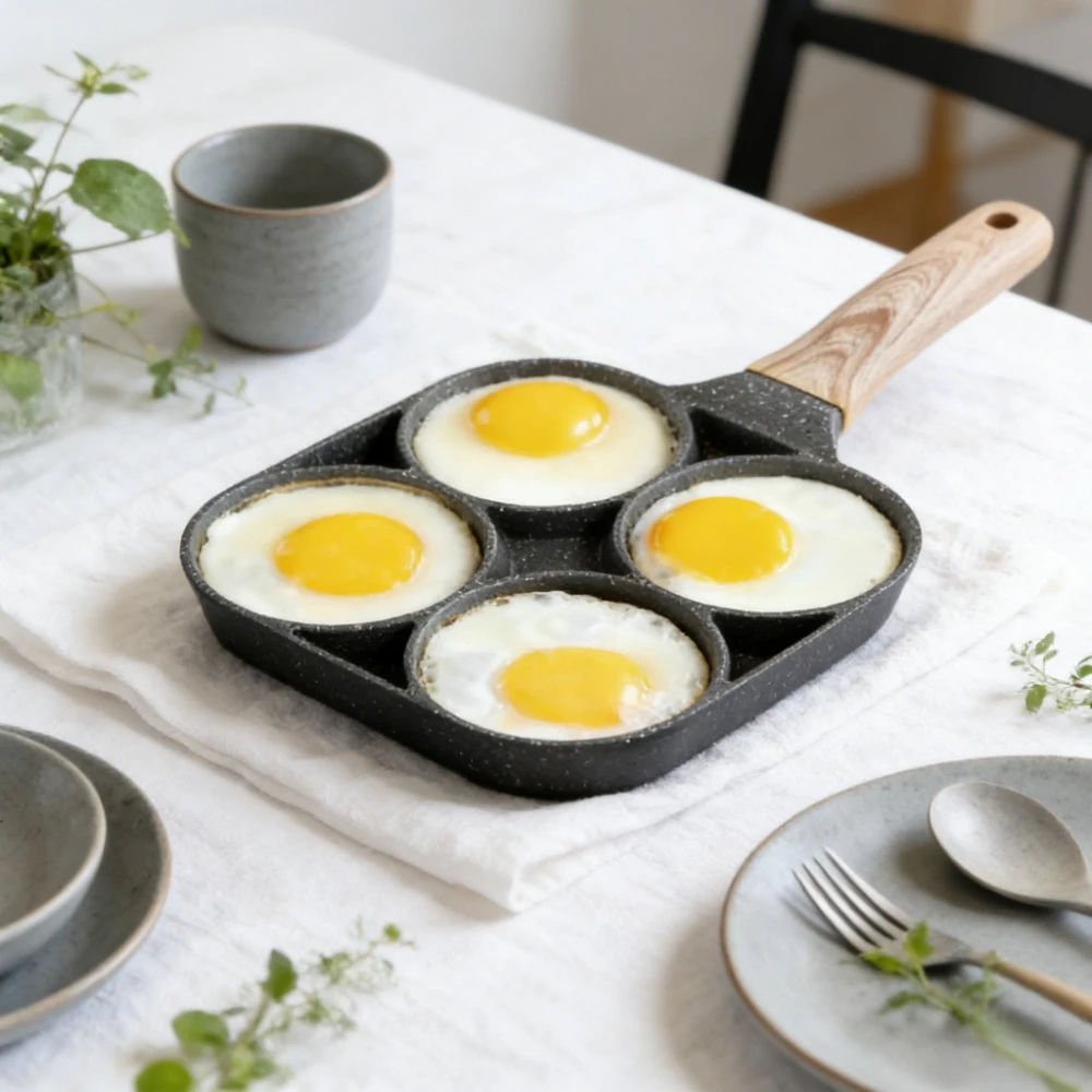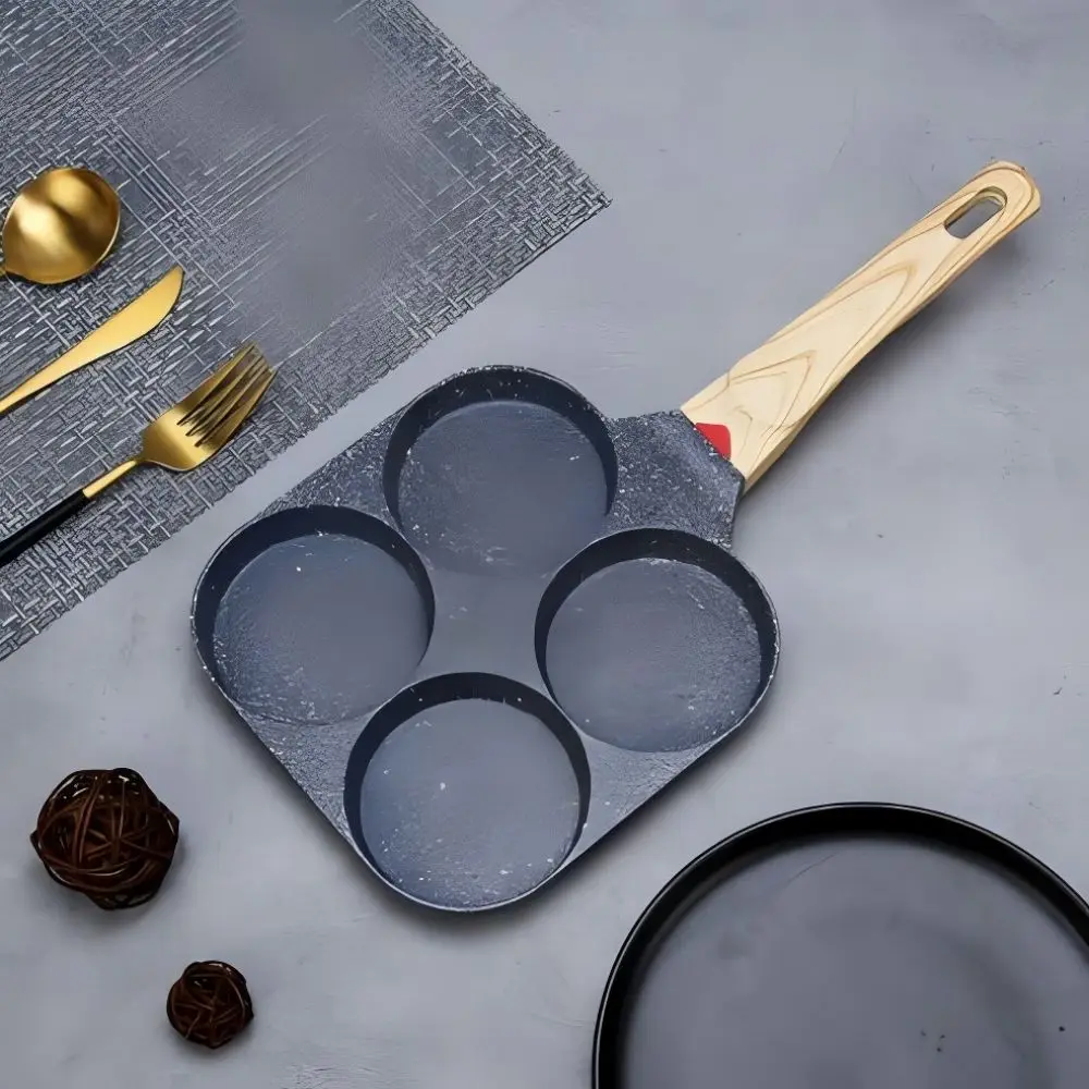 4 Hole Omelet Pan Non-Stick Handle Breakfast Maker Induction Cookware