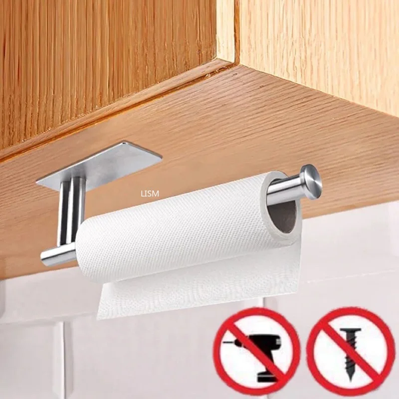 This self-adhesive toilet paper towel holder is designed for easy installation without the need for punching holes. It is made of durable stainless steel and is suitable for use in both bathrooms and kitchens.