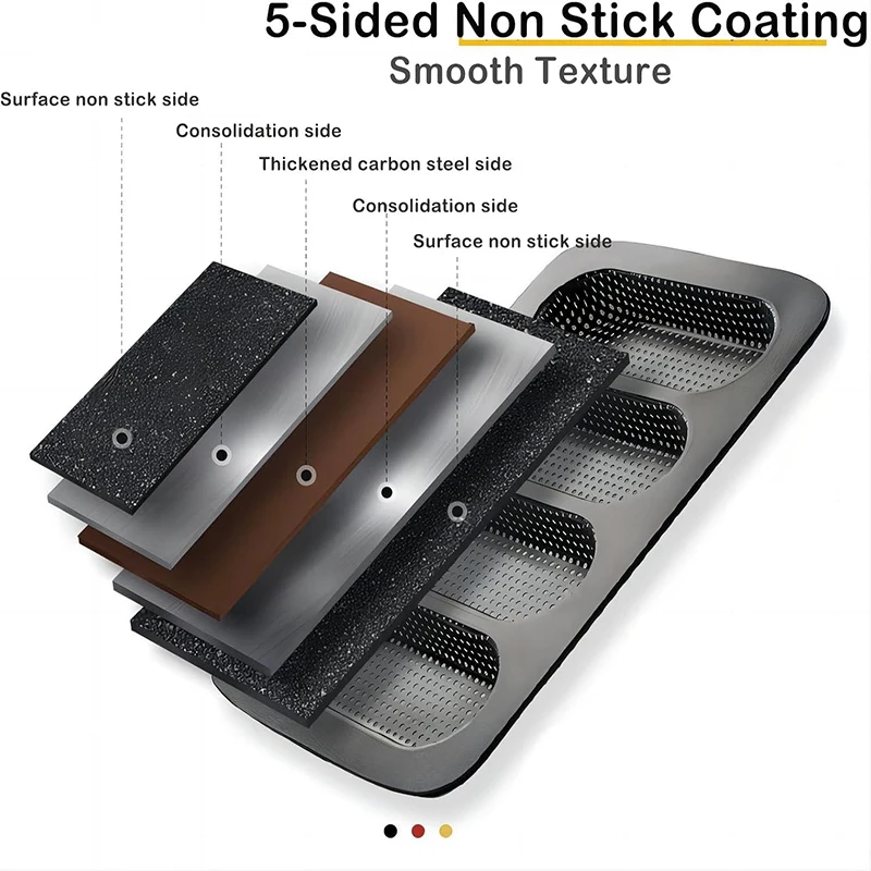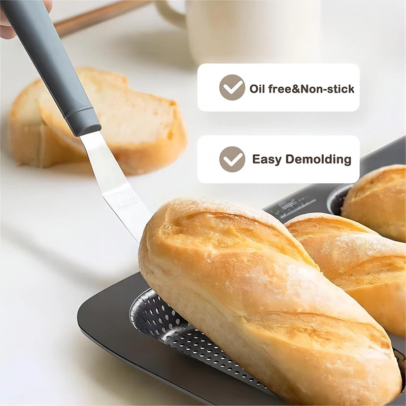 Nonstick Perforated 4 Cup French Bread Mold Carbon Steel Baguette Pan Bakeware