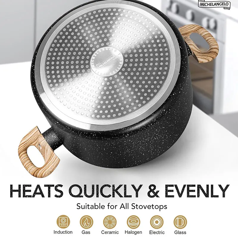 • Even Heat Distribution: Constructed with a three-layer bottom, this pot heats up quickly and evenly, suitable for all cooktops including induction.