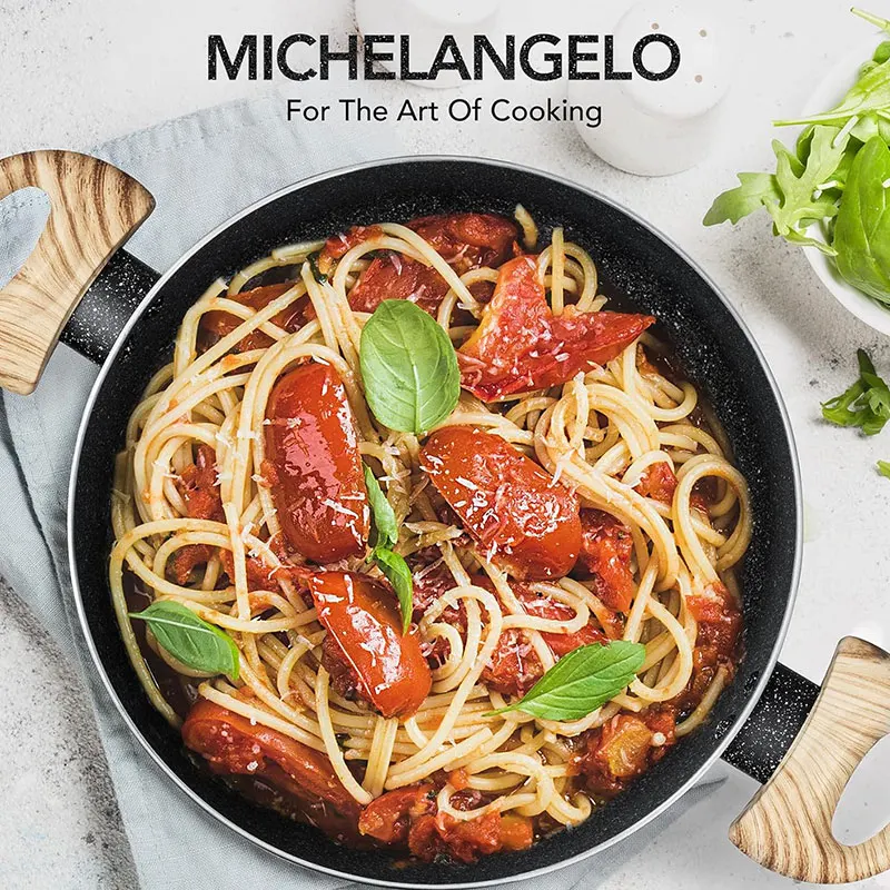 • Comfortable Handle: The ergonomic wood-grain bakelite handle remains cool to the touch, providing a comfortable grip while cooking.