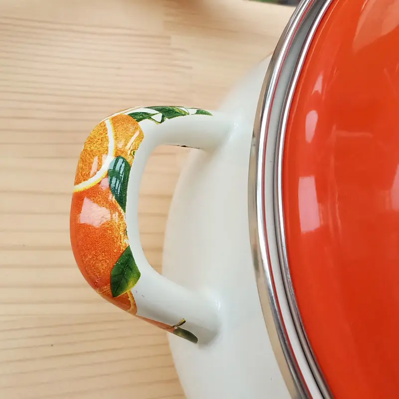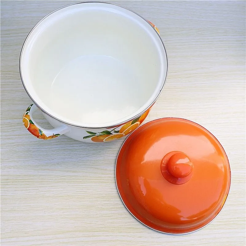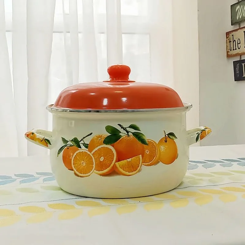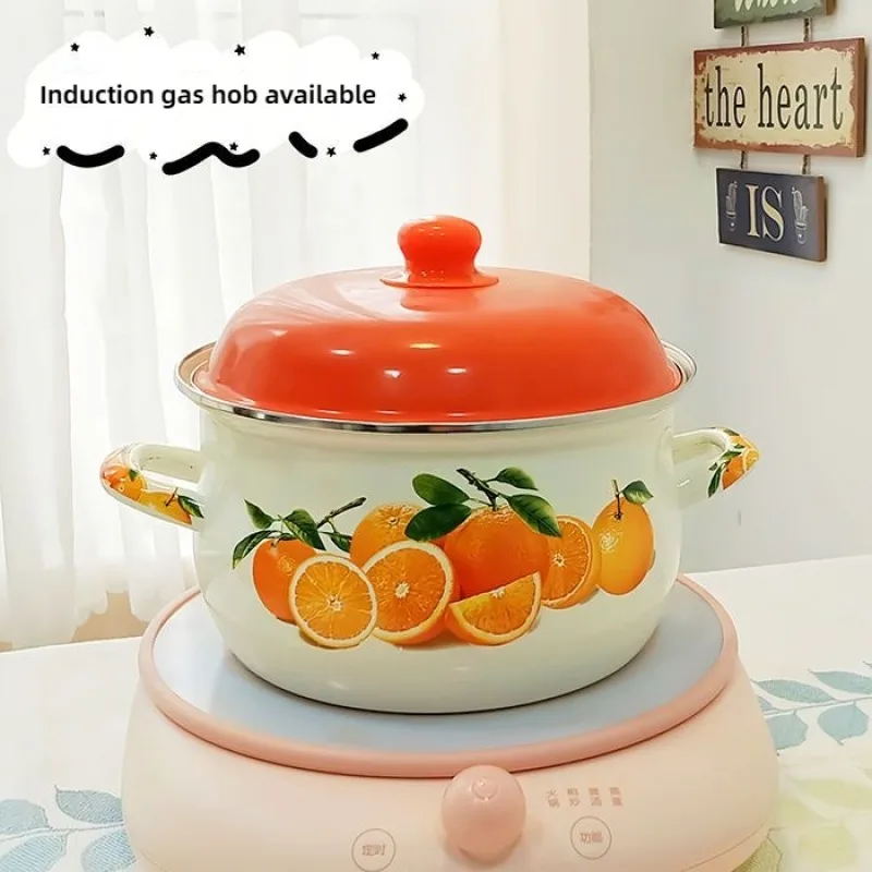 Orange Enamel Stew Pot Cooking Pot Kitchen Stuff for Kitchen Cooking Pans Induction Open Flame Universal