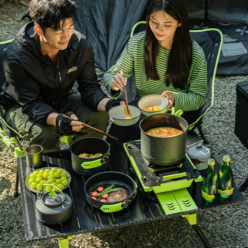 Outdoor Camping Pot Set Aluminum Alloy Kettle Non-stick Pot Easy Storage