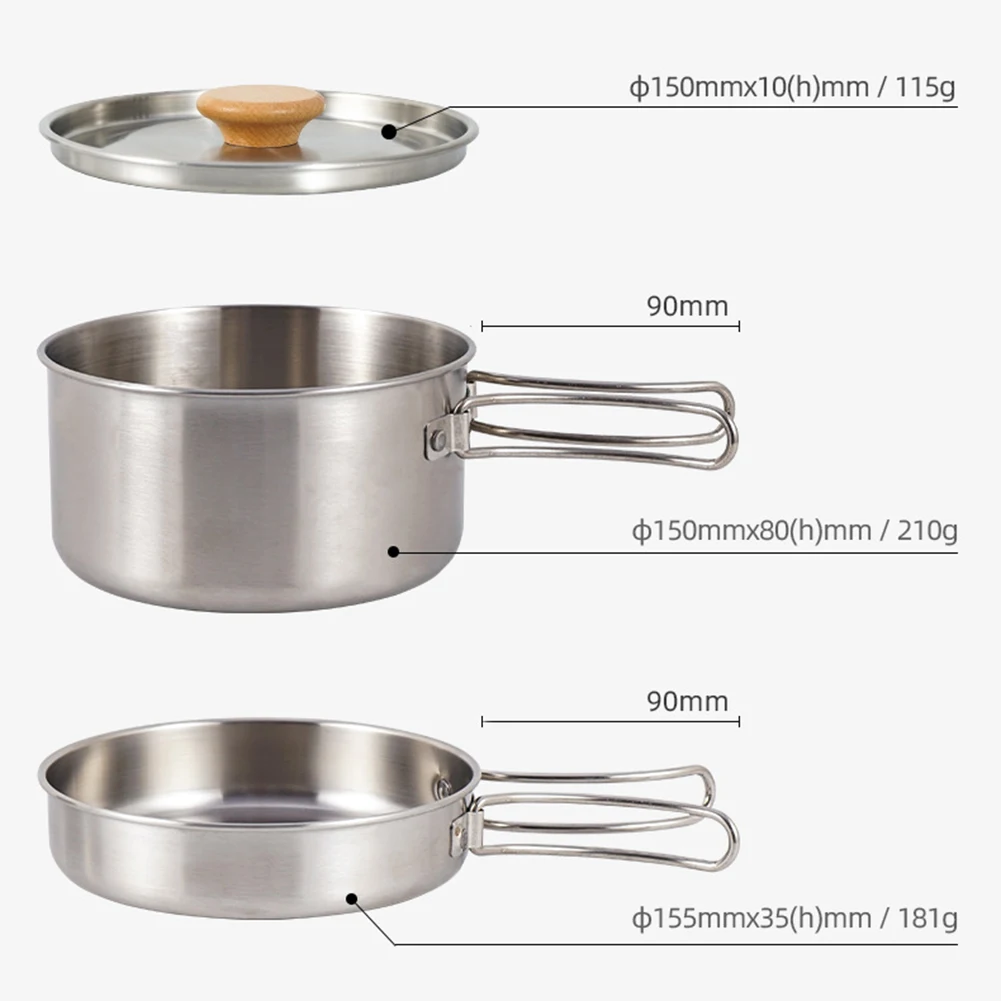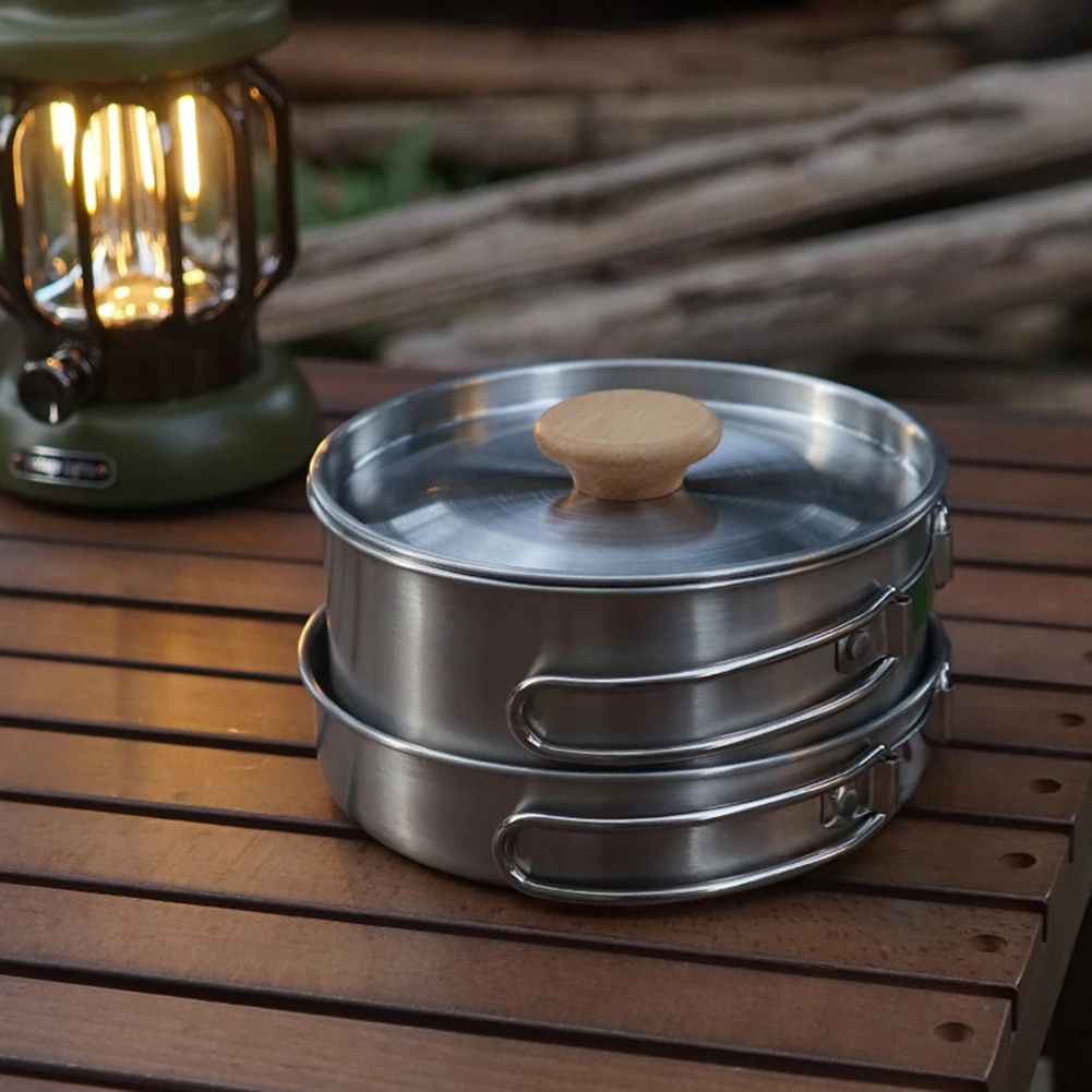 Outdoor Stainless Steel Camping Pot Set Practical Cookware for Hiking and Climbing