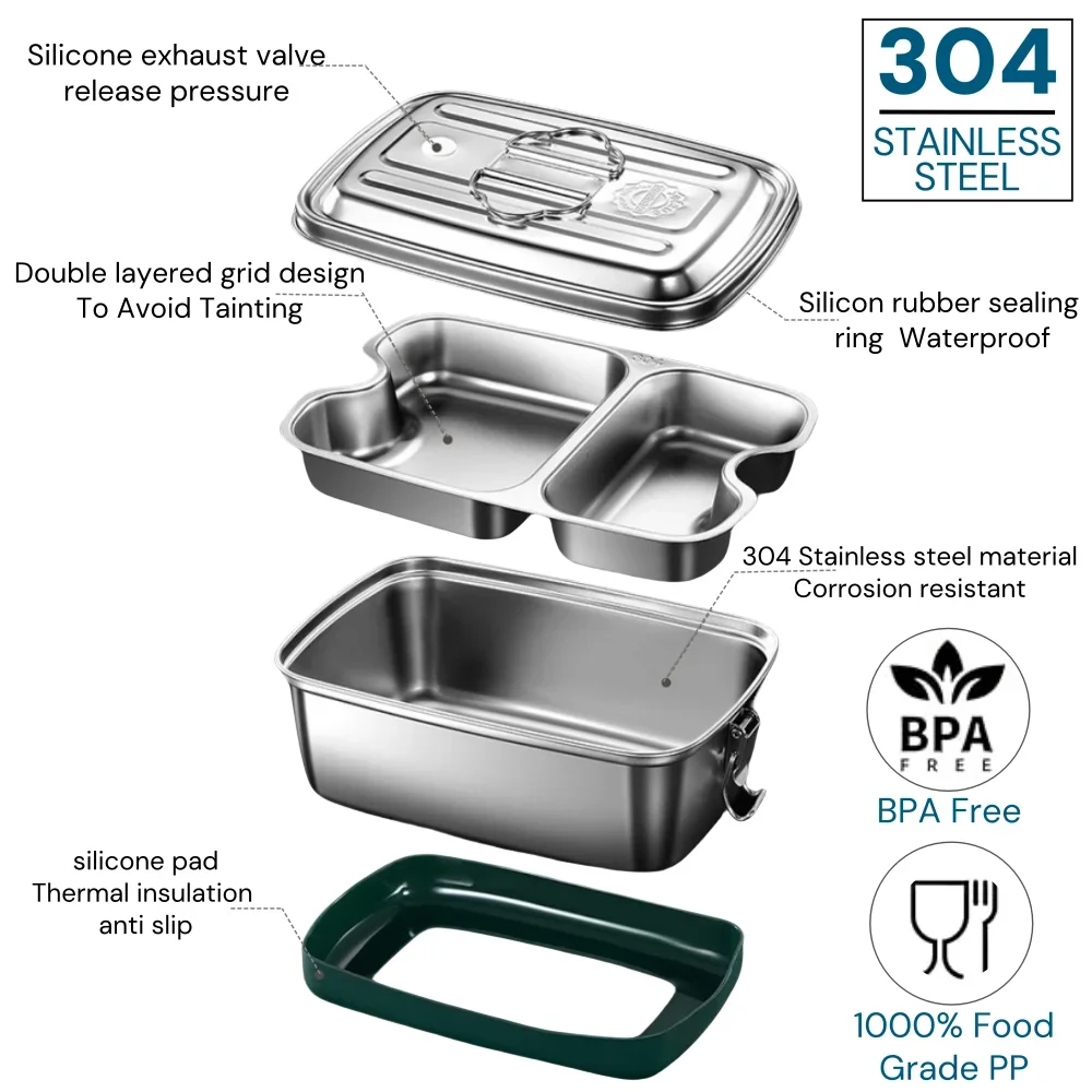 Bento Lunch Box for Adults Stainless Steel Eco-Friendly Leakproof Meal Prep Container
