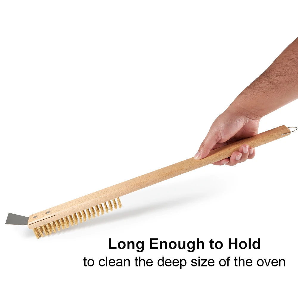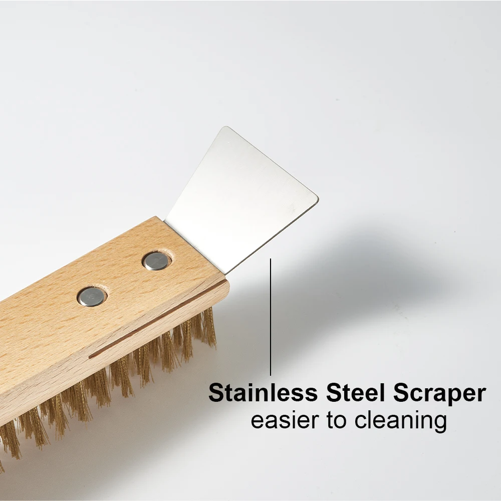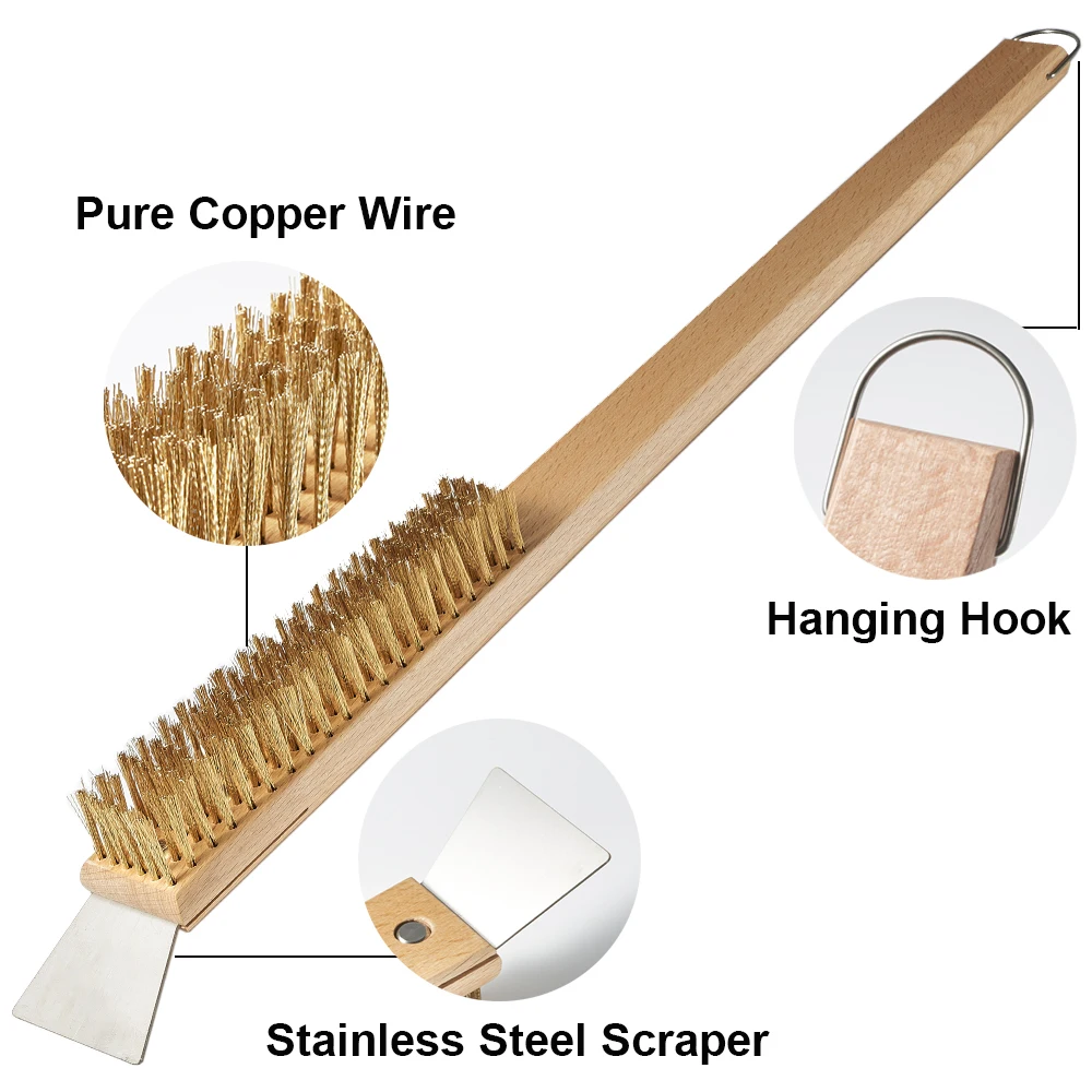Pizza Oven Cleaning Brush Copper Bristle Brass Wood Handle for Small Ovens