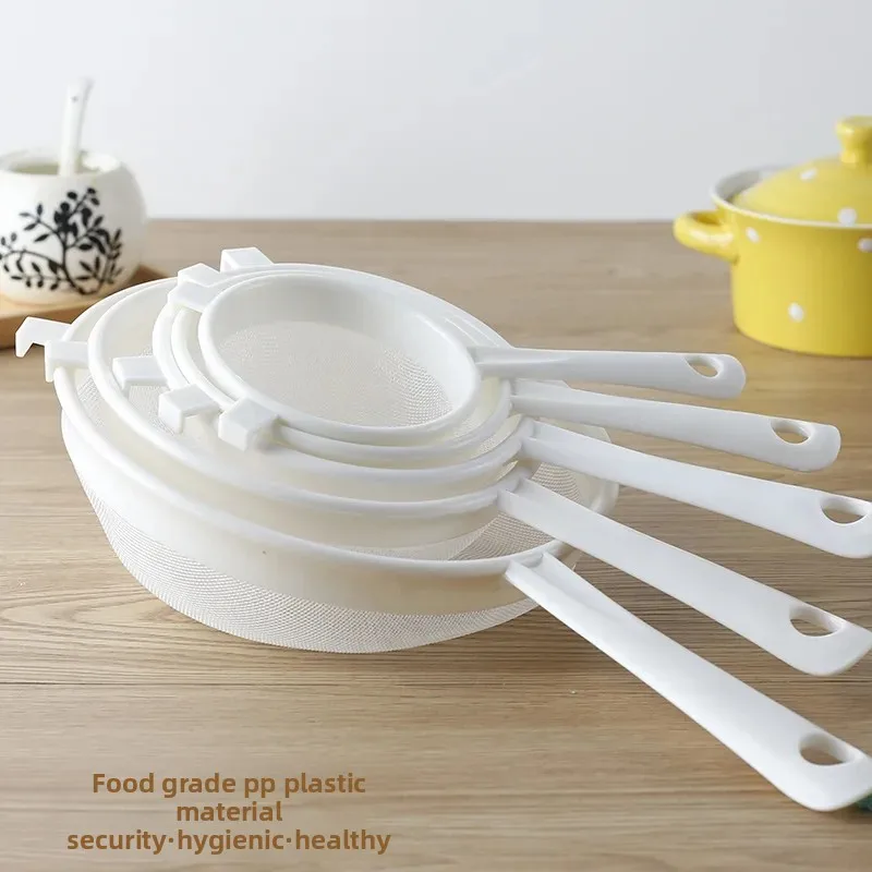 This plastic filter screen is designed for straining yogurt, snow lotus fungus, soy milk, and juice, making it an essential kitchen utensil for various food preparation tasks.