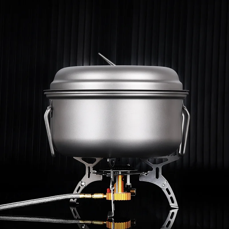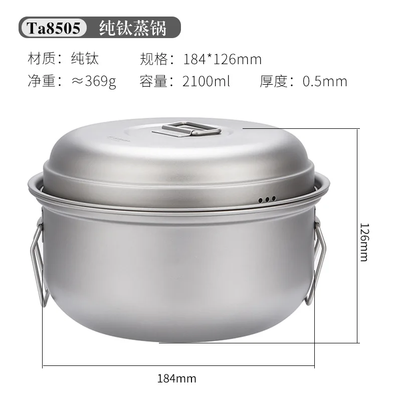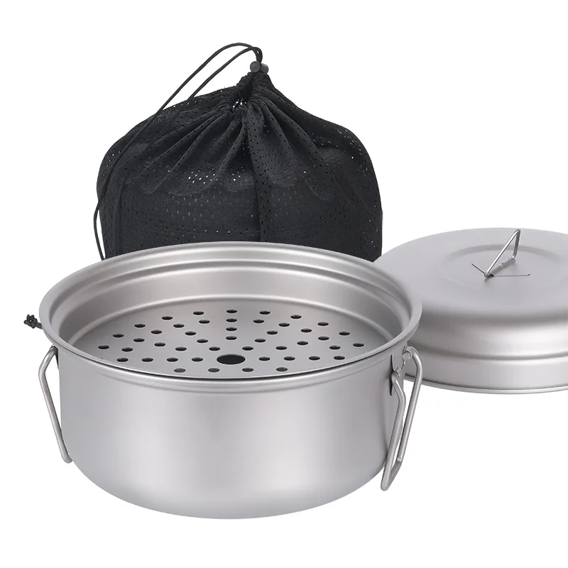 Pure Titanium Steamer Cooker Outdoor Tableware Large Soup Pot 2L Camping Cookware