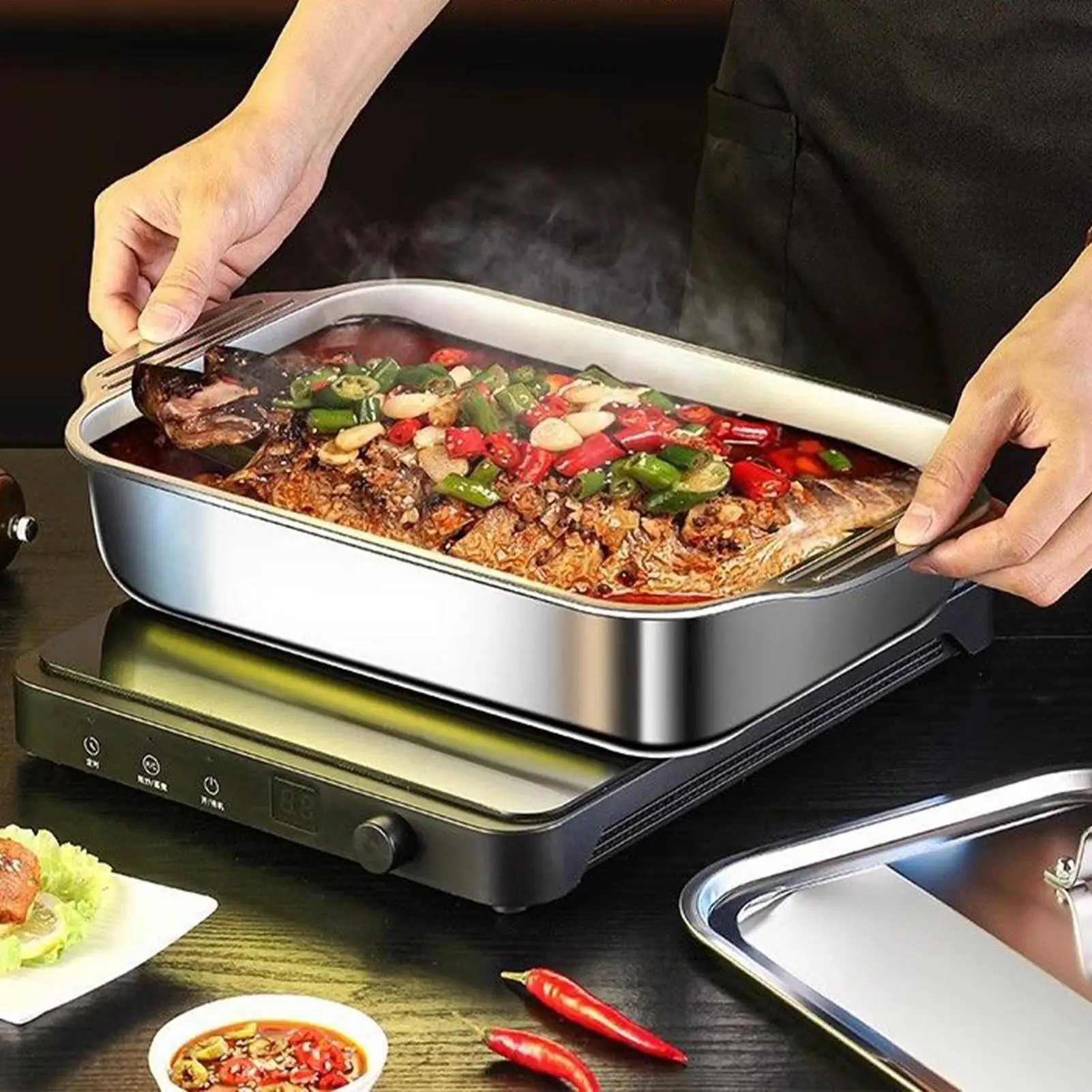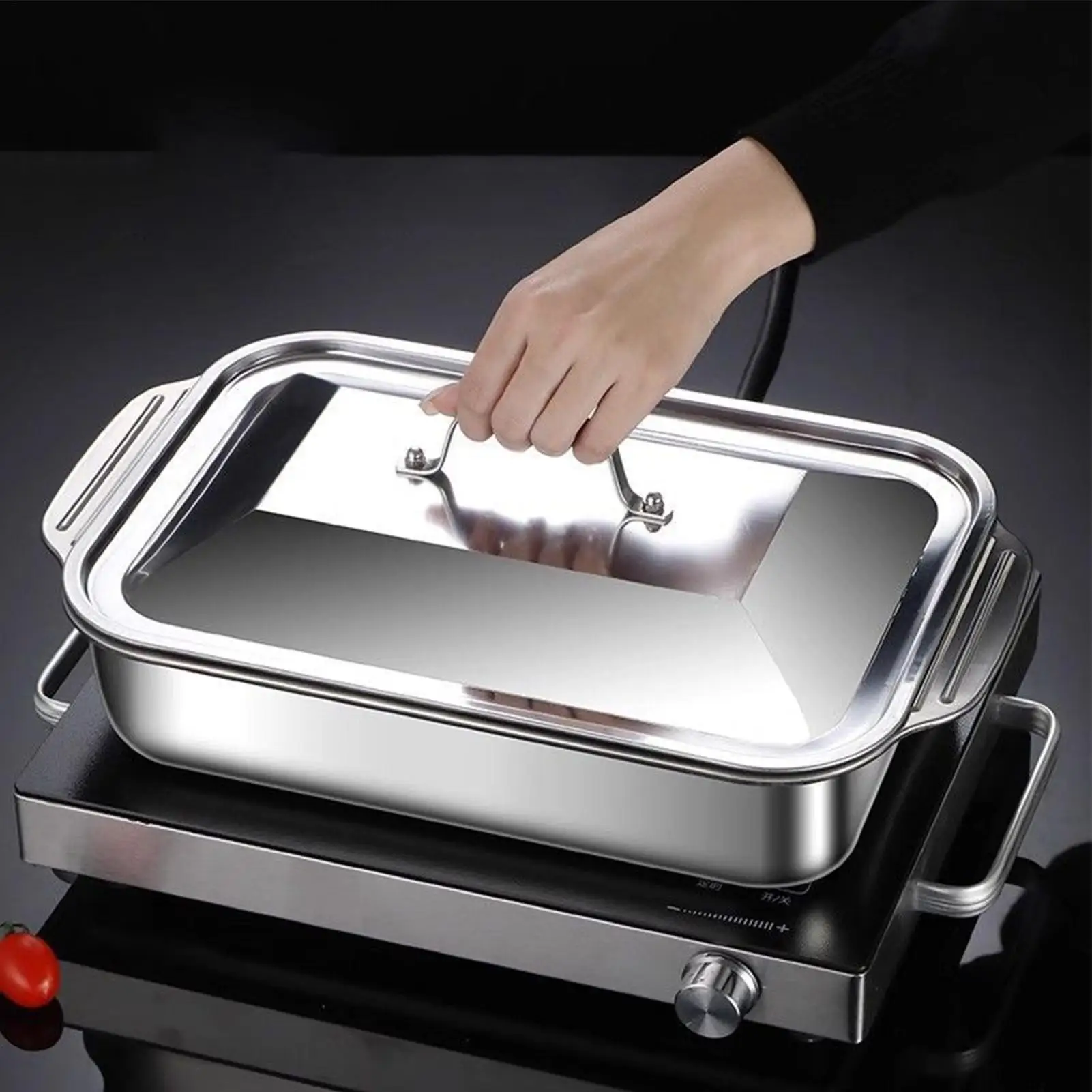 Rectangle Stainless Steel Baking Tray with Lid and Handle Non-Stick Oven Pan for BBQ, Buffet & Holiday Baking Bakeware