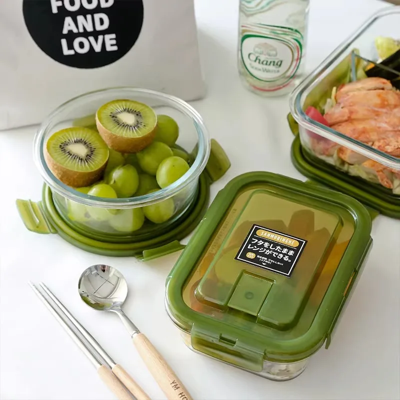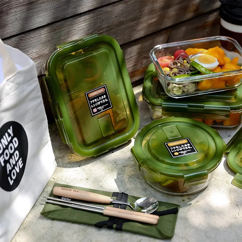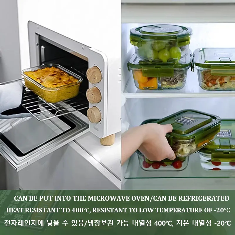 Rectangular Transparent Glass Lunch Box with Lid Microwave Safe Heat Resistant