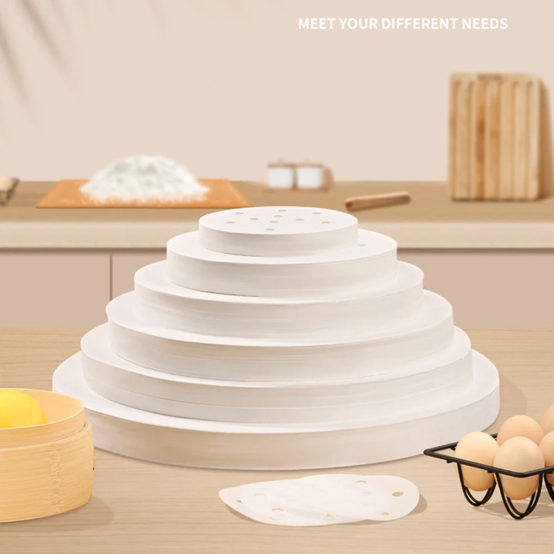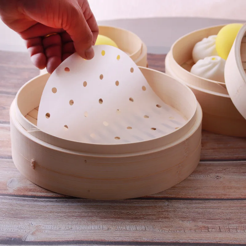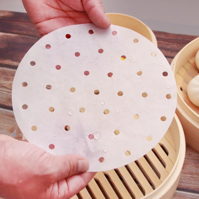 Round steamer paper is designed for use in bamboo baskets, air fryers, and ovens, making it an essential accessory for baking and cooking. These premium perforated liners ensure that your food is cooked evenly while preventing sticking and making cleanup a breeze.
