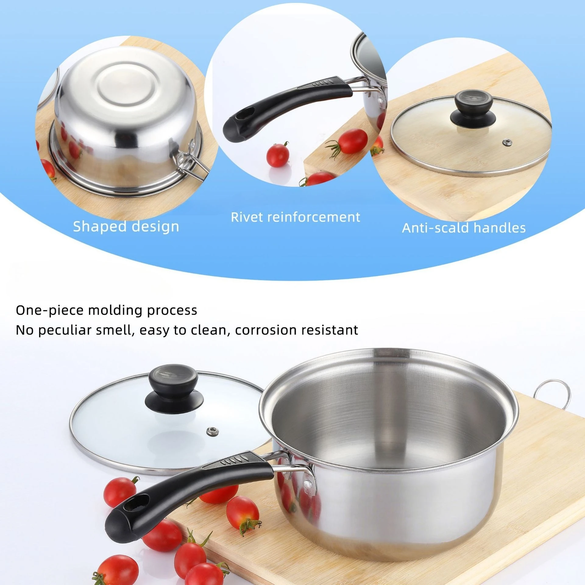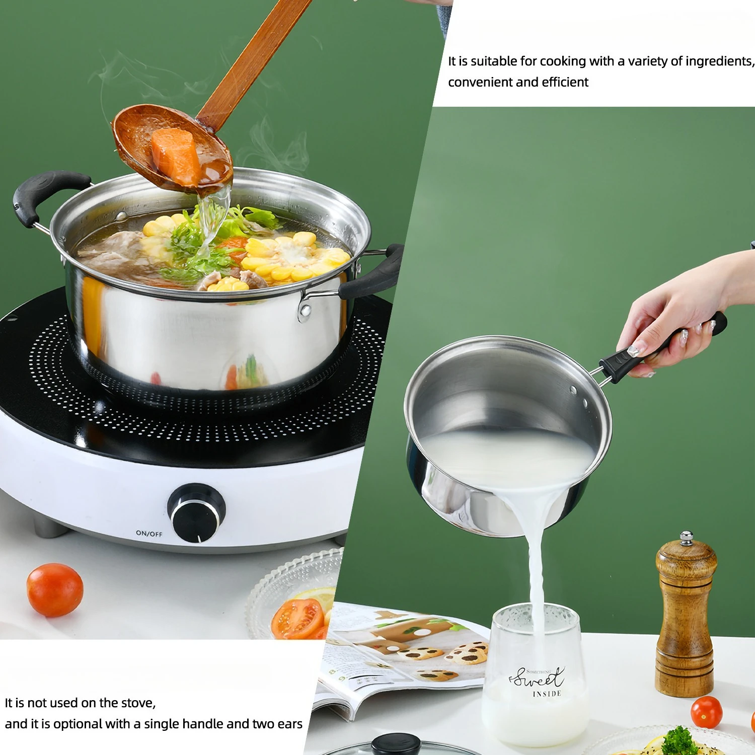 This stainless steel milk pot is perfect for preparing baby food, noodles, and milk. With a double ear design, it is easy to handle and suitable for use on induction cookers.
