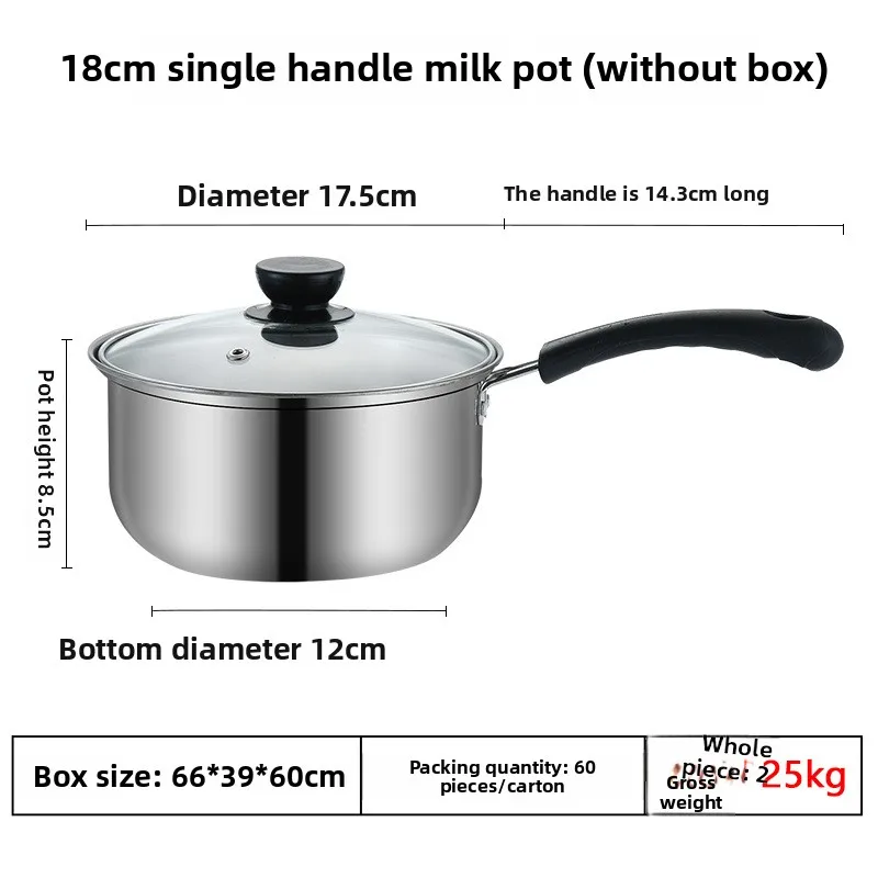 Small Milk Pot Stainless Steel 18cm Baby Food Pot Noodle Milk Non Stick Induction Cooker Double Ear Soup Pot