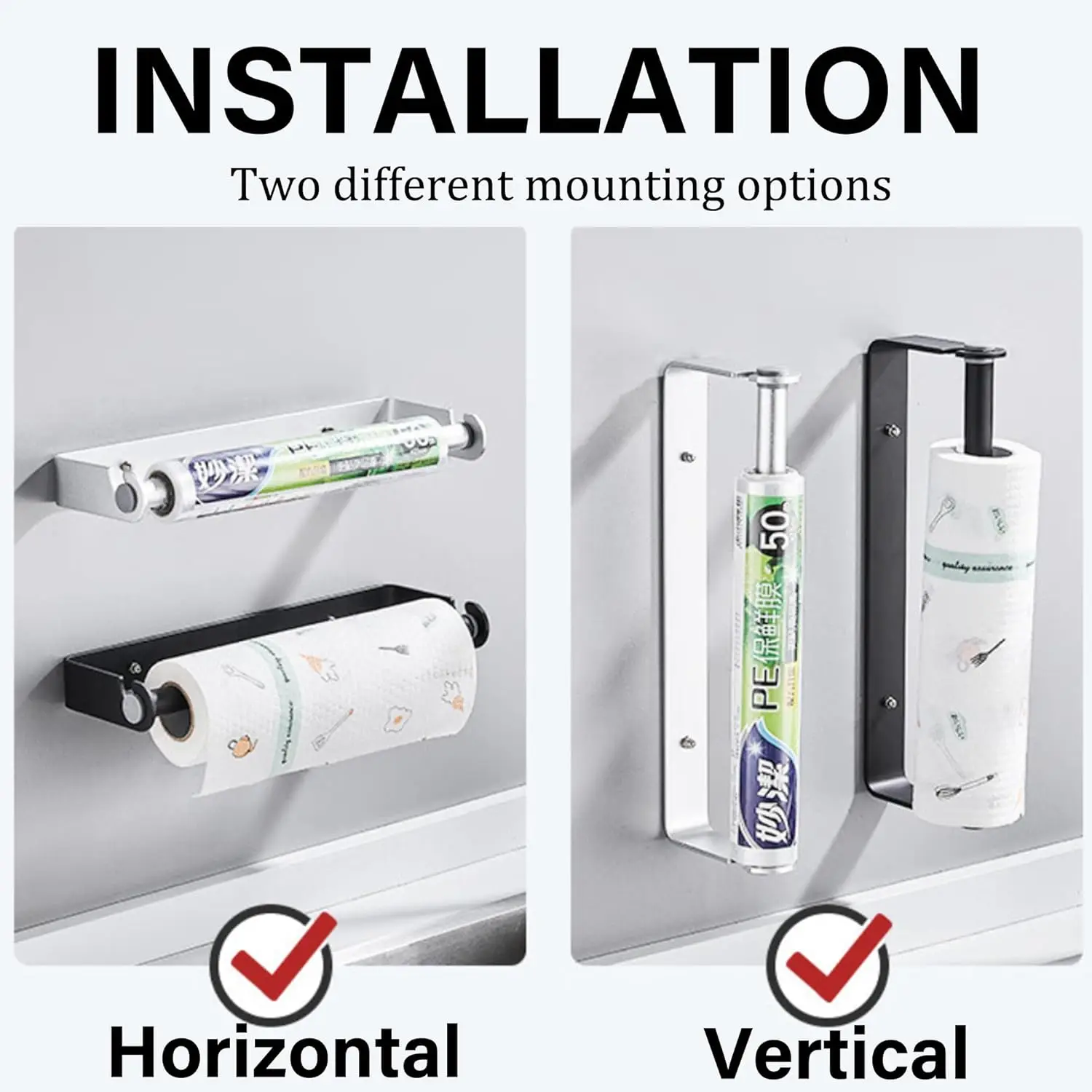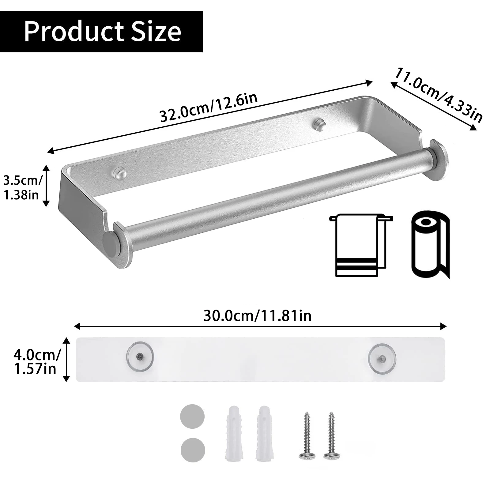 Space Aluminum Kitchen Roll Holder Wall Mounted Paper Towel Holder Black Silver