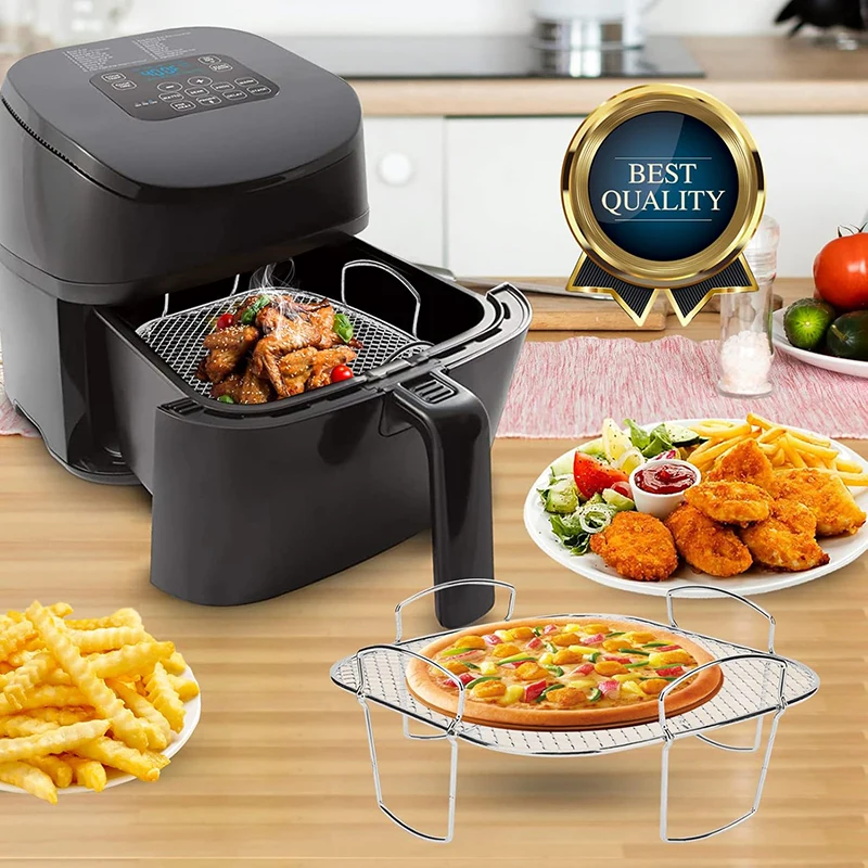 Square Hot Air Fryer Accessories Metal Oven Baking Rack Cooking Grill Holder for Cosori, Instant, Vortex, Foodi Airfryer Basket