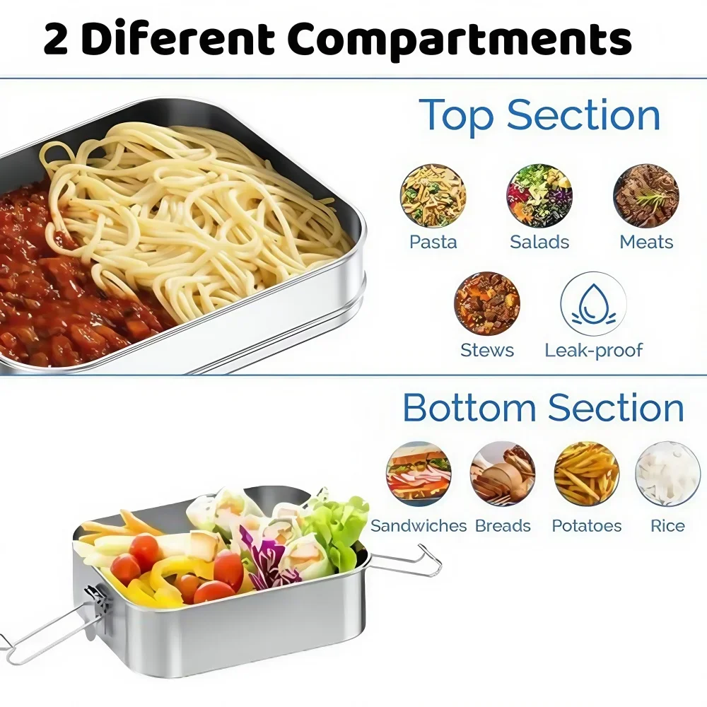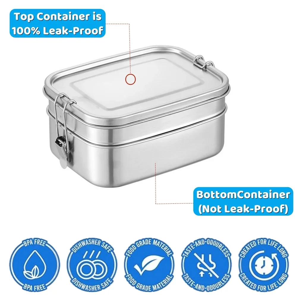Stackable Bento Lunch Box for Kids and Adults 1400ml Stainless Steel Eco-Friendly