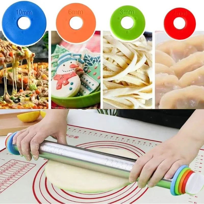 Introducing the Stainless Steel Adjustable Rolling Pin, a versatile kitchen accessory designed for rolling dough with ease. This rolling pin features an adjustable design, allowing you to achieve the perfect thickness for your pastry, cookies, and more.
