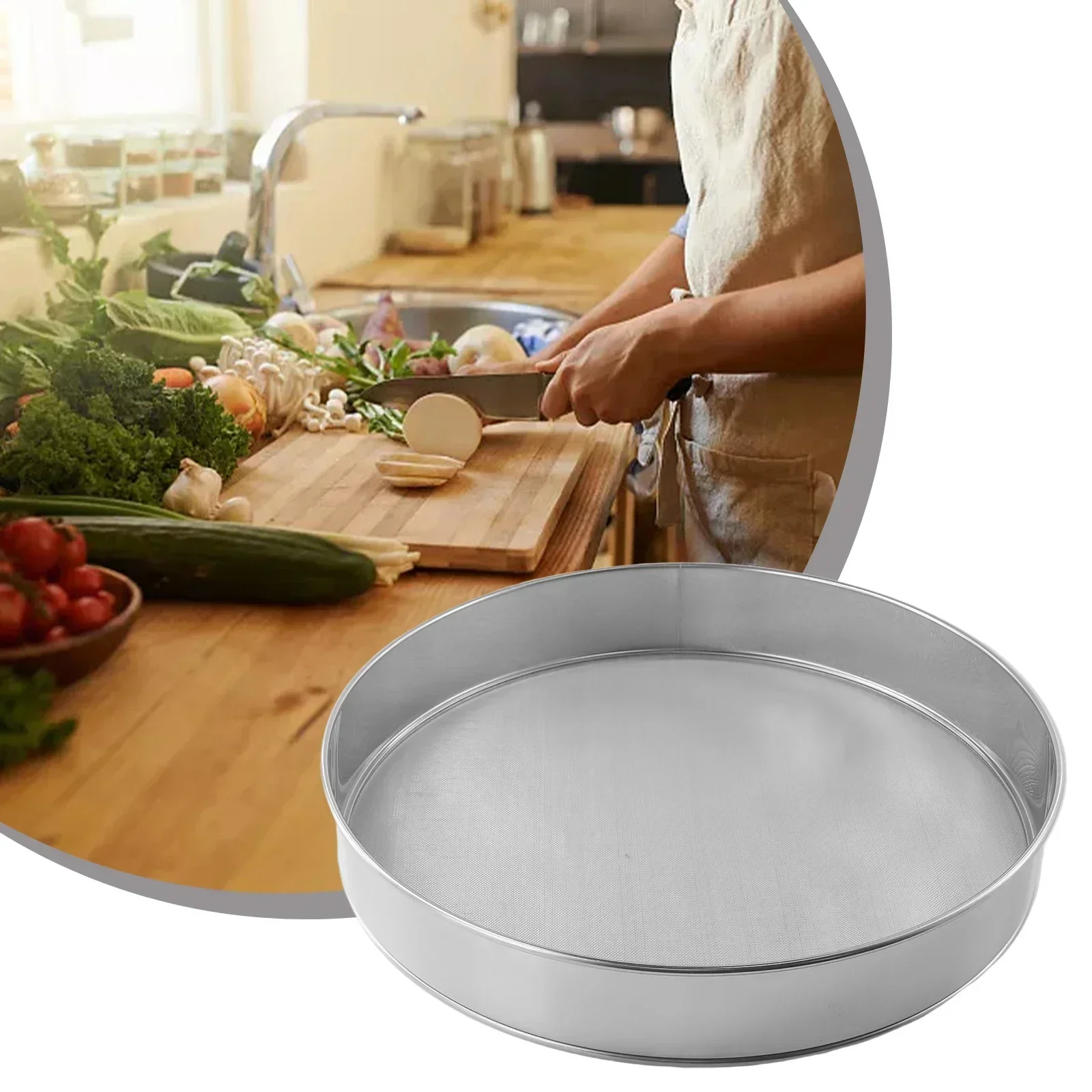 Stainless Steel Flour Sieve 40 Mesh Filter Kitchen Baking Tool 15cm 20cm 25cm 30cm
