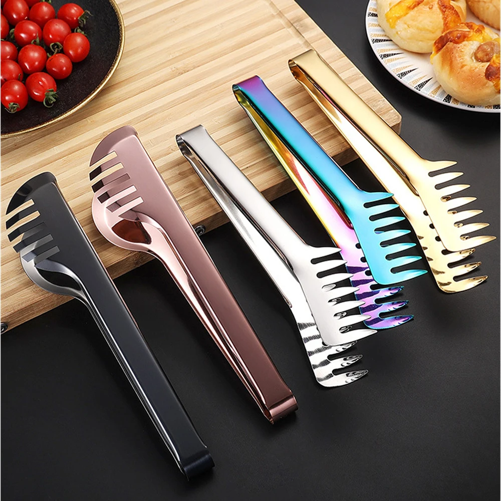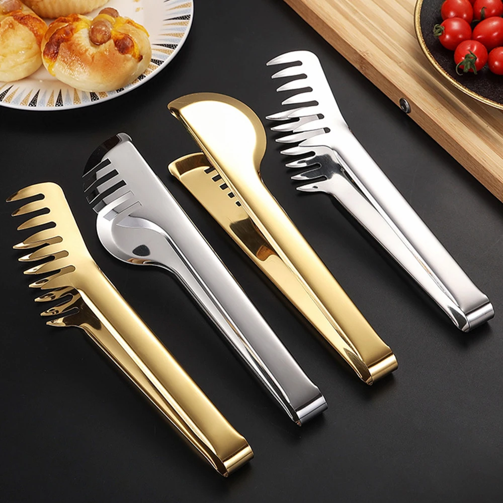 Stainless Steel Gold Kitchen BBQ Tongs Multiple Styles Cake Clip Food Steak Clamp