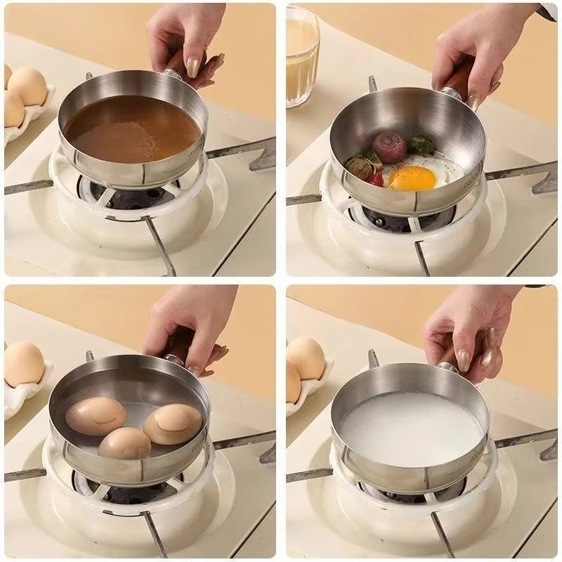 Stainless Steel Instant Noodle Pot, a compact cooking pot designed for single servings, featuring an elegant mahogany finish. This pot is perfect for preparing quick meals such as instant noodles or warming milk.