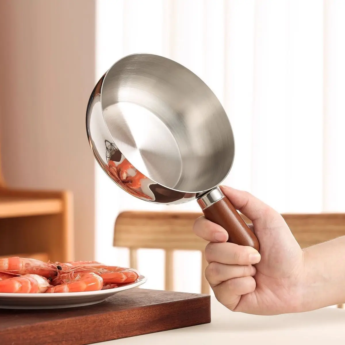 Stainless Steel Instant Noodle Pot is designed for single servings, perfect for quick meals. Its high-value appearance and peach wood accents make it a stylish addition to your kitchen. This small cooking pot is ideal for preparing instant noodles and snacks with ease.