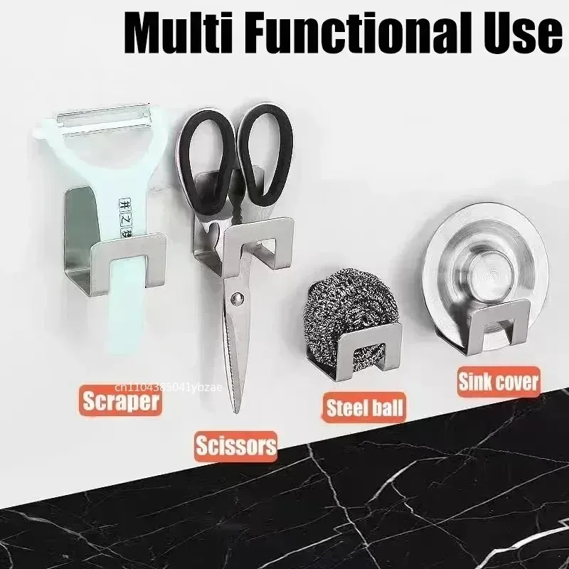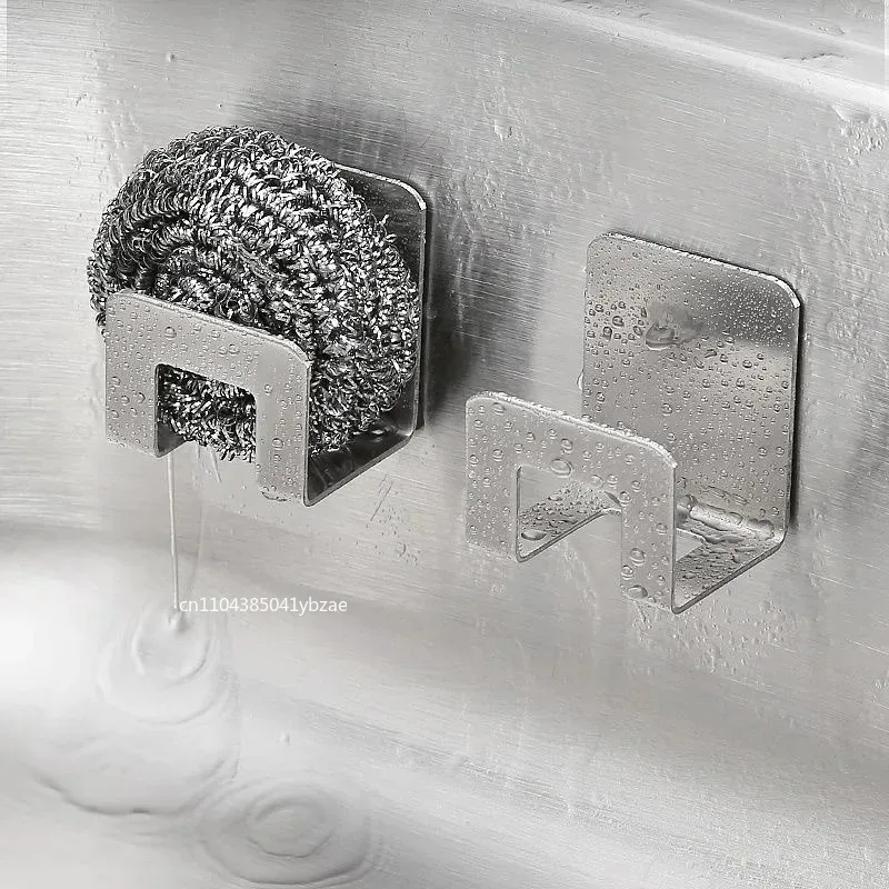 This stainless steel kitchen sink sponge holder tray is designed to keep your sponges and brushes organized and dry. It features a self-adhesive hook for easy installation, making it a practical addition to your kitchen accessories.